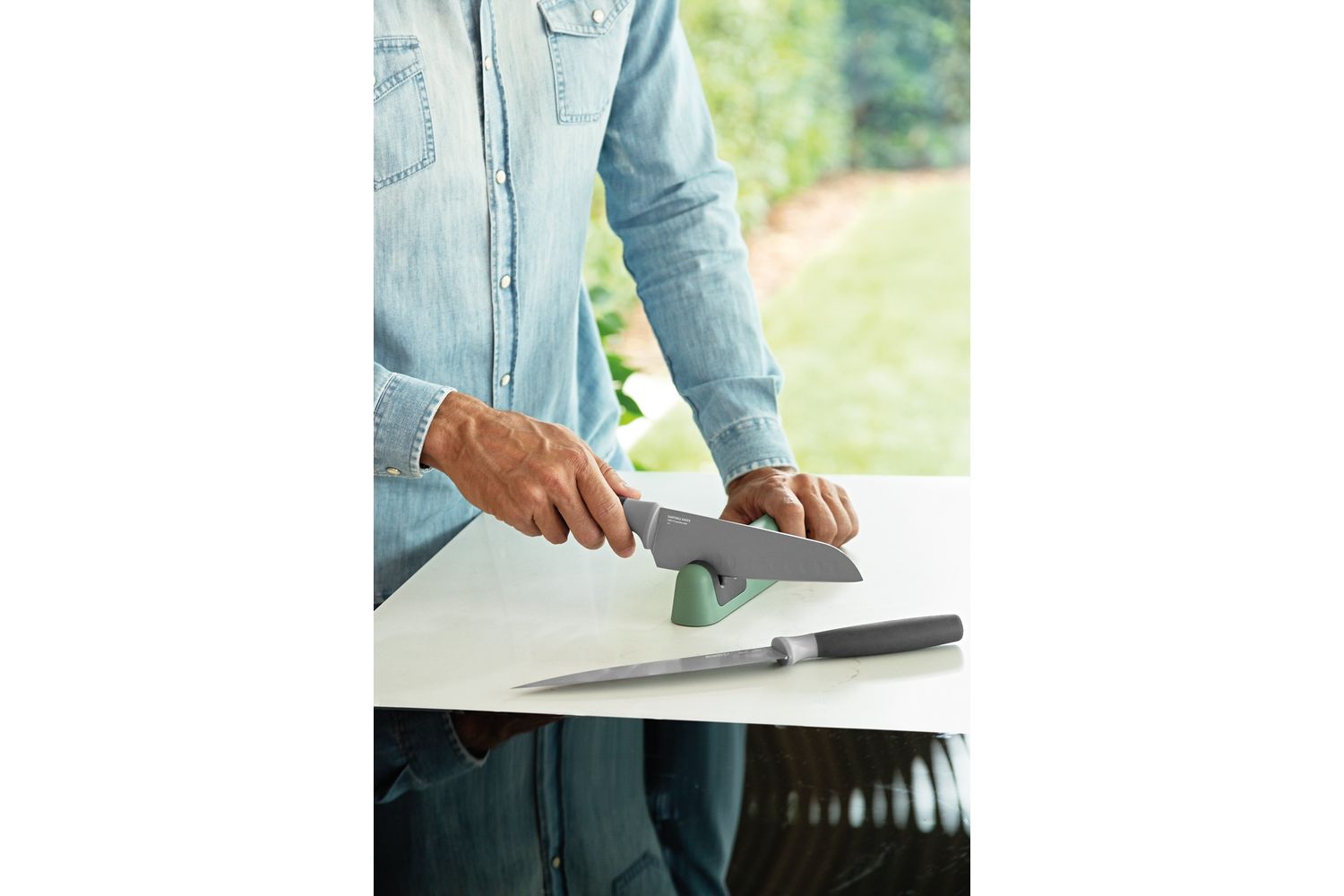 Berghoff Two Section Knife Sharpener | Ceramic And Plastic | Green