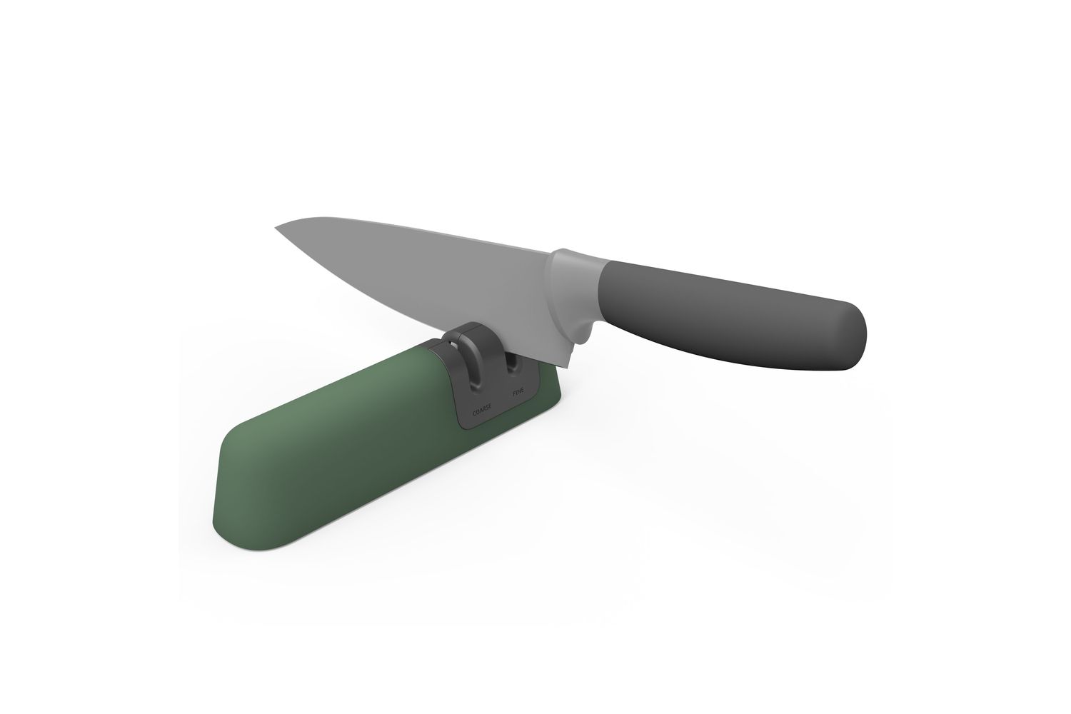 - Two-stage sharpening system: coarse for sharpening, fine for polishing