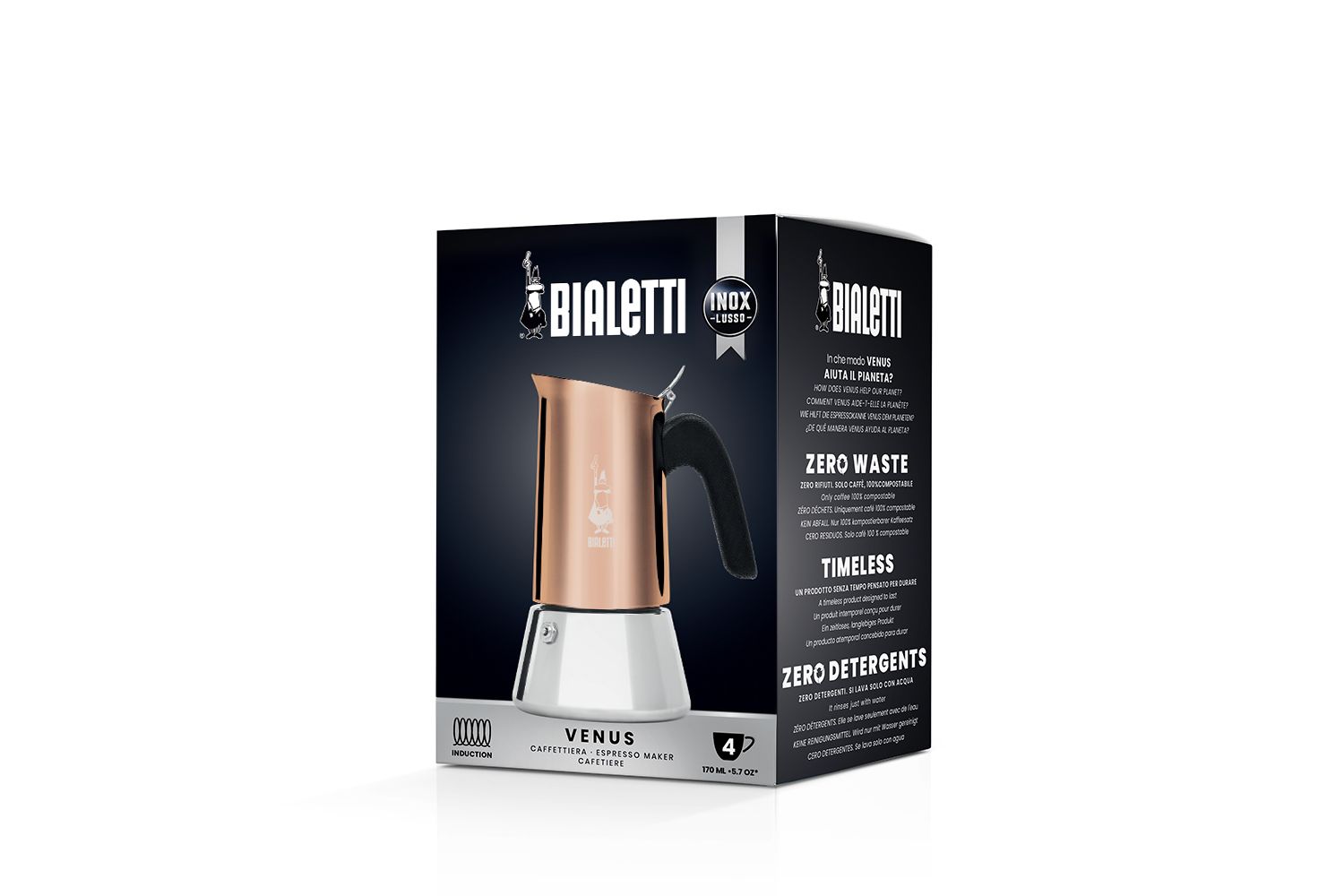 Bialetti Venus 4 Cup Copper 6: A touch of timeless elegance and peak performance in your kitchen. Brew, indulge, and appreciate the exceptional blend of tradition and modern elegance the Bialetti Venus Bronze introduces into your coffee routine.