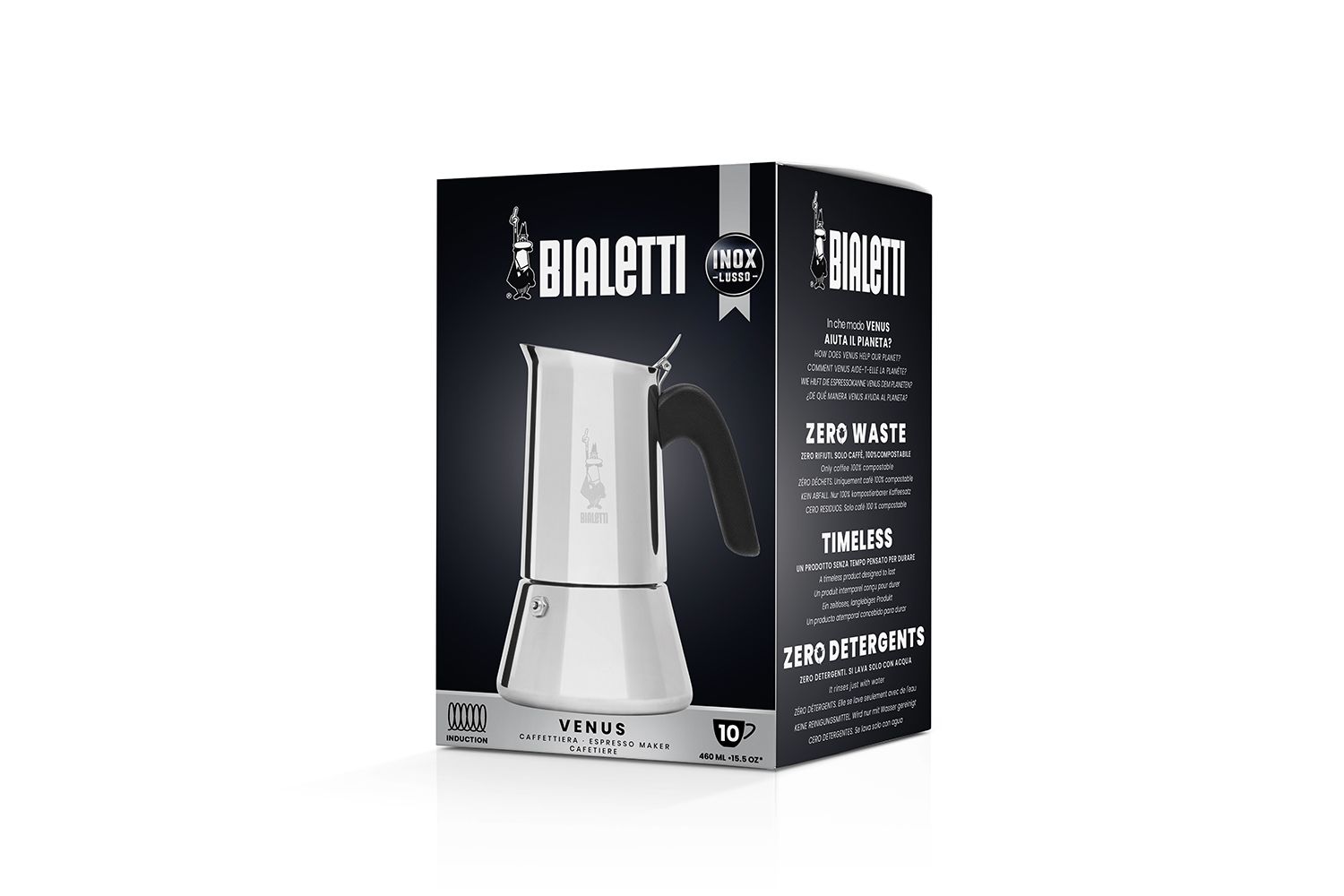 The Bialetti Venus is compatible with induction, gas, and electric cooktops, making it a versatile asset to any kind of kitchen. In addition, the Venus coffee maker is available in a 10-cup capacity, which is equal to about 460 ml of delectable coffee, perfect for when you have a few friends over or even for your familys Sunday brunch. Living up to Bialettis esteemed legacy of carrying authentic Italian coffee culture, the Venus combines elegant design, enduring materials and stellar performance in a single package, satisfying the highest standard for coffee aficionados.