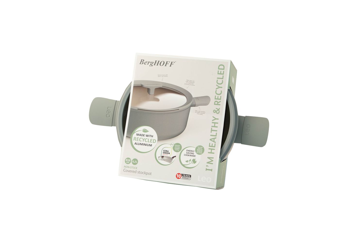 This Berghoff stockpot is engineered for versatility, working seamlessly on all hob types, including induction, gas, electric, halogen, and even downdraft systems. The full disk base ensures rapid, even heat distribution, so your meals cook efficiently and thoroughly every time. The innovative CeraGreen ceramic non-stick coating is PFAS-free, promoting healthy cooking with minimal oil and making clean-up effortless. Enjoy peace of mind knowing your cookware is food safe and environmentally conscious, thanks to its sustainable materials and design.