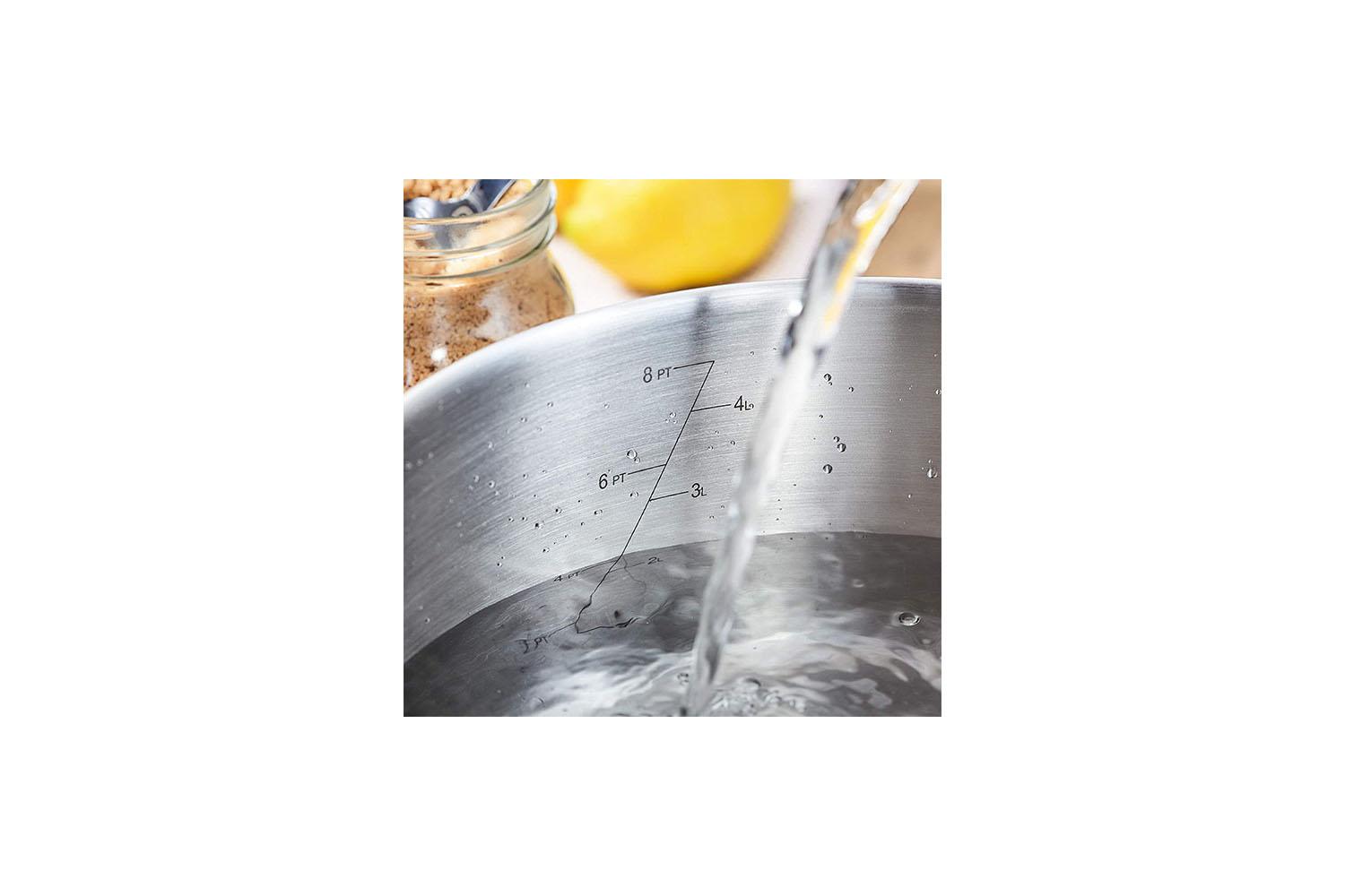 The attractive stainless steel pot is dishwasher safe, extremely convenient for those who like to keep their kitchen tidy and up-to-date. Its shatter-proof vented glass lid prevents over boiling, making your cooking process stress-free and enjoyable rather than a chore. Reinforced with internal time-saving measuring guides, you can measure your ingredients in the pot, saving you time and cleaning.