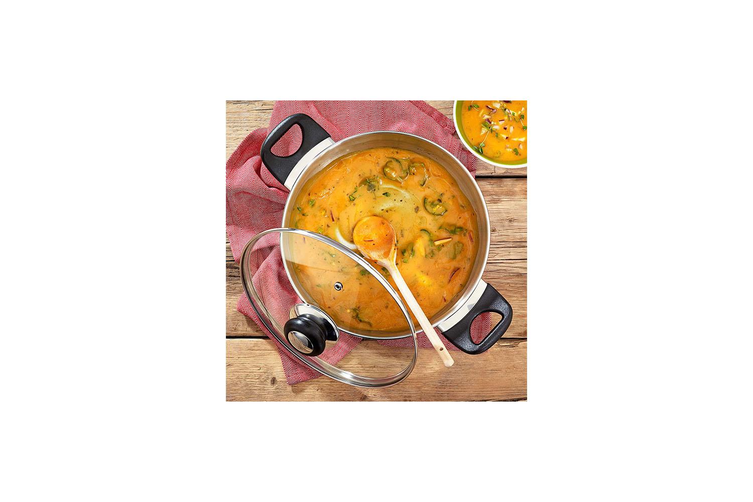 Designed by JUDGE, a trusted brand in homeware and kitchen appliances, this pot falls under the must-have category for every homecook and professional chef. Thanks to the impressive 'hot-forged' bases, this pot delivers even heat distribution on all hob types including gas, ceramic, halogen, solid plate and even induction hobs. The safe and secure handling is further ensured by the easy-grip, comfortable and phenolic low-heat transmission handles.