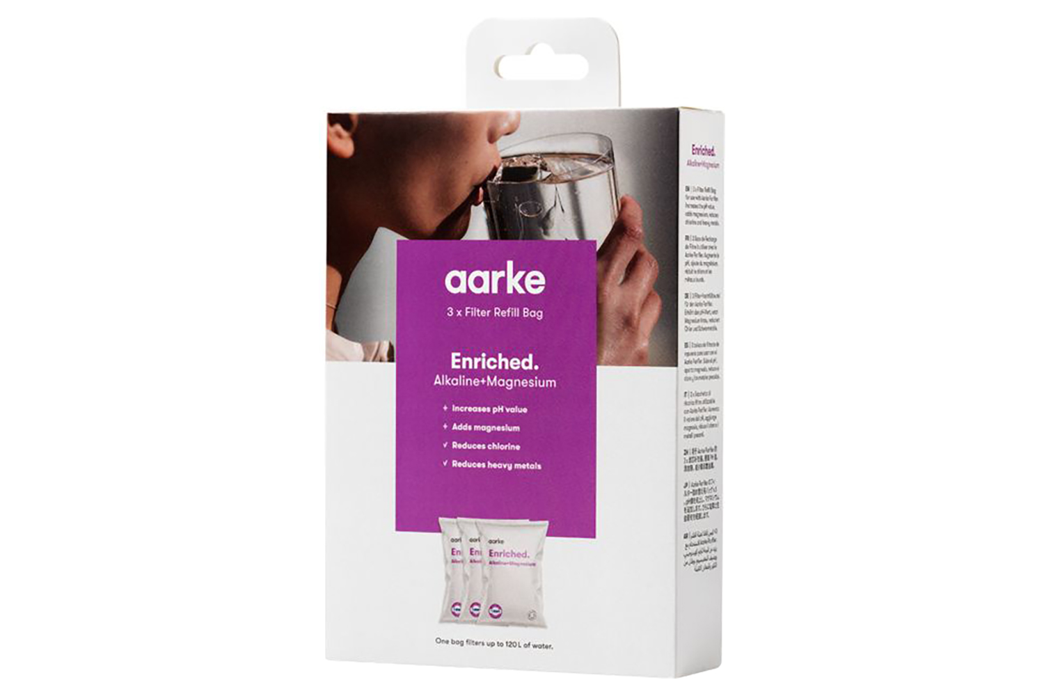 The Enriched filter granules are made exclusively for the Aarke Purifier and are our upgraded filter option. They are poured into the Purifier’s filter cartridge and make the water cleaner by reducing chlorine and heavy metals. They also add magnesium and turn your tap water into alkaline water through increased pH value. Made in collaboration with BWT, one of the world’s leading water technology companies.