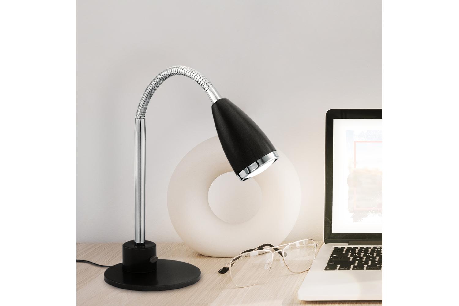 Embedded with a warm white GU10-LED light bulb, the EGLO Fox lamp emits a pleasant and comforting glow. The light quality complements the black and chrome aesthetics effortlessly, adding further value to this adjustable, multi-purpose LED desk lamp. Don't forget the user-friendly rocker switch located at the base that lets you switch the light on and off with ease; you don’t have to fumble about for the switch anymore!