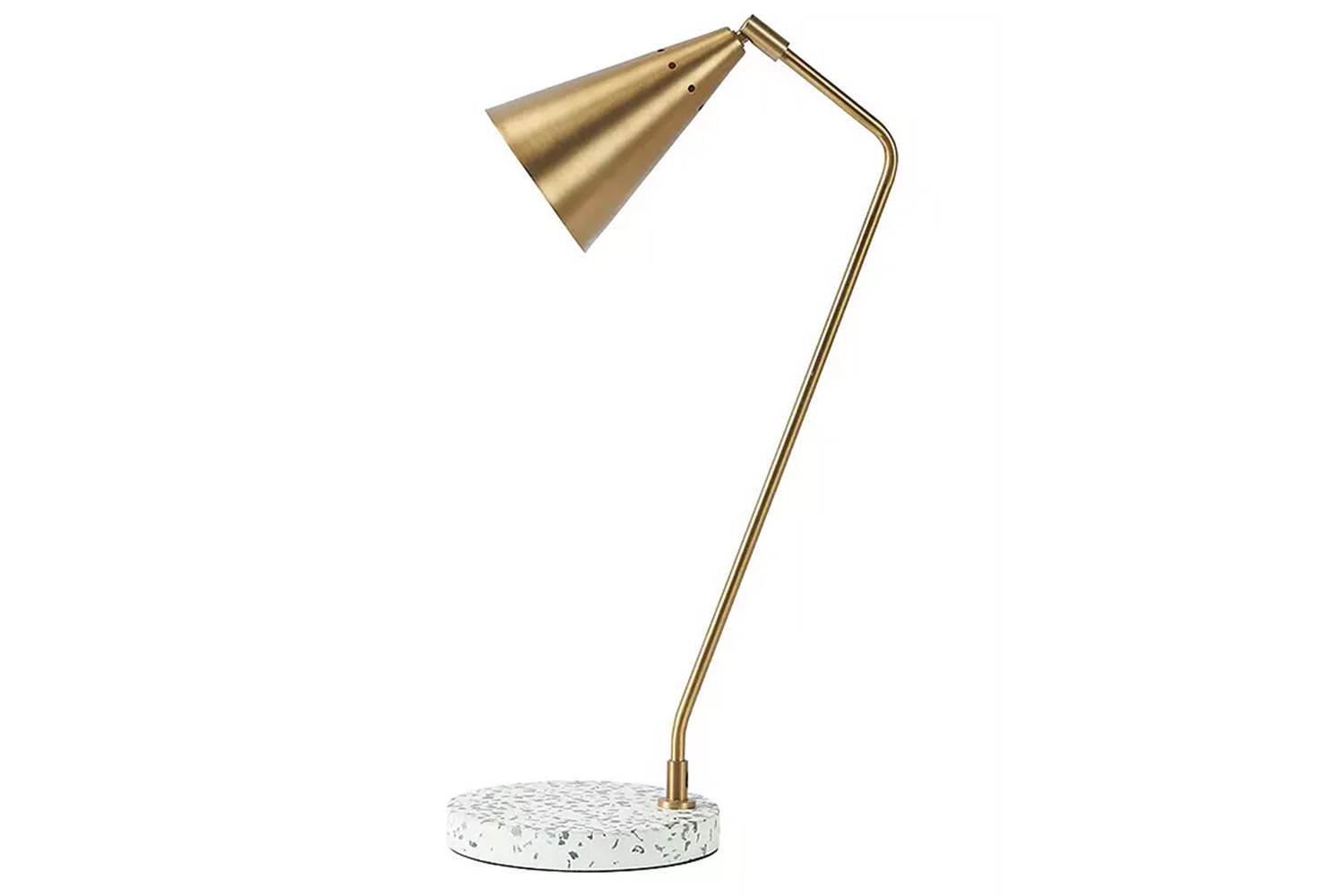 Add a refined touch to your workspace with the Pavonazzo Desk Lamp, designed in collaboration with Designers Guild. This striking desk lamp features a terrazzo base with green and grey marble chips, paired with a brushed brass stem and shade for a sophisticated, contemporary look. Perfect for home offices or creative corners, it blends artistic flair with functional lighting.