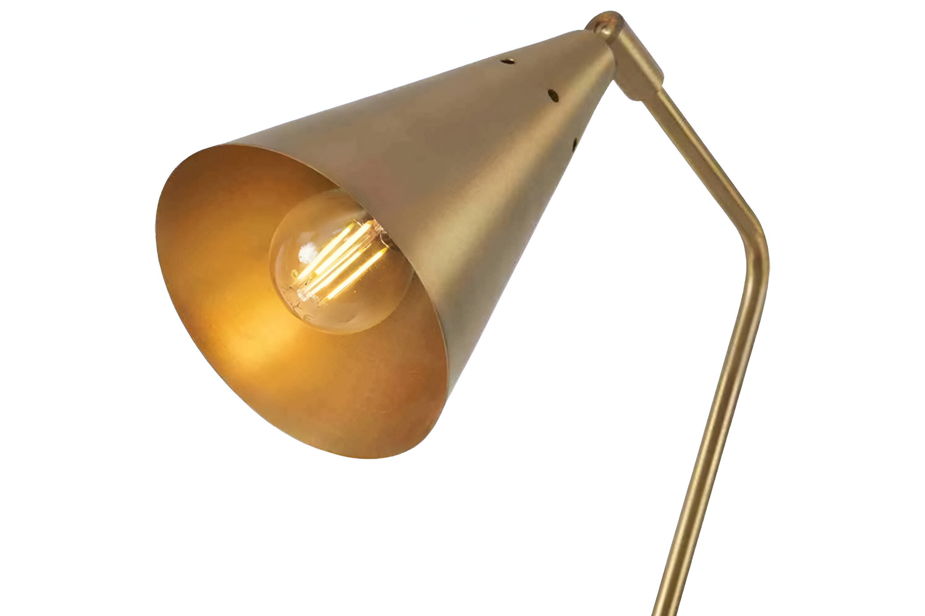 - Brushed brass stem and shade