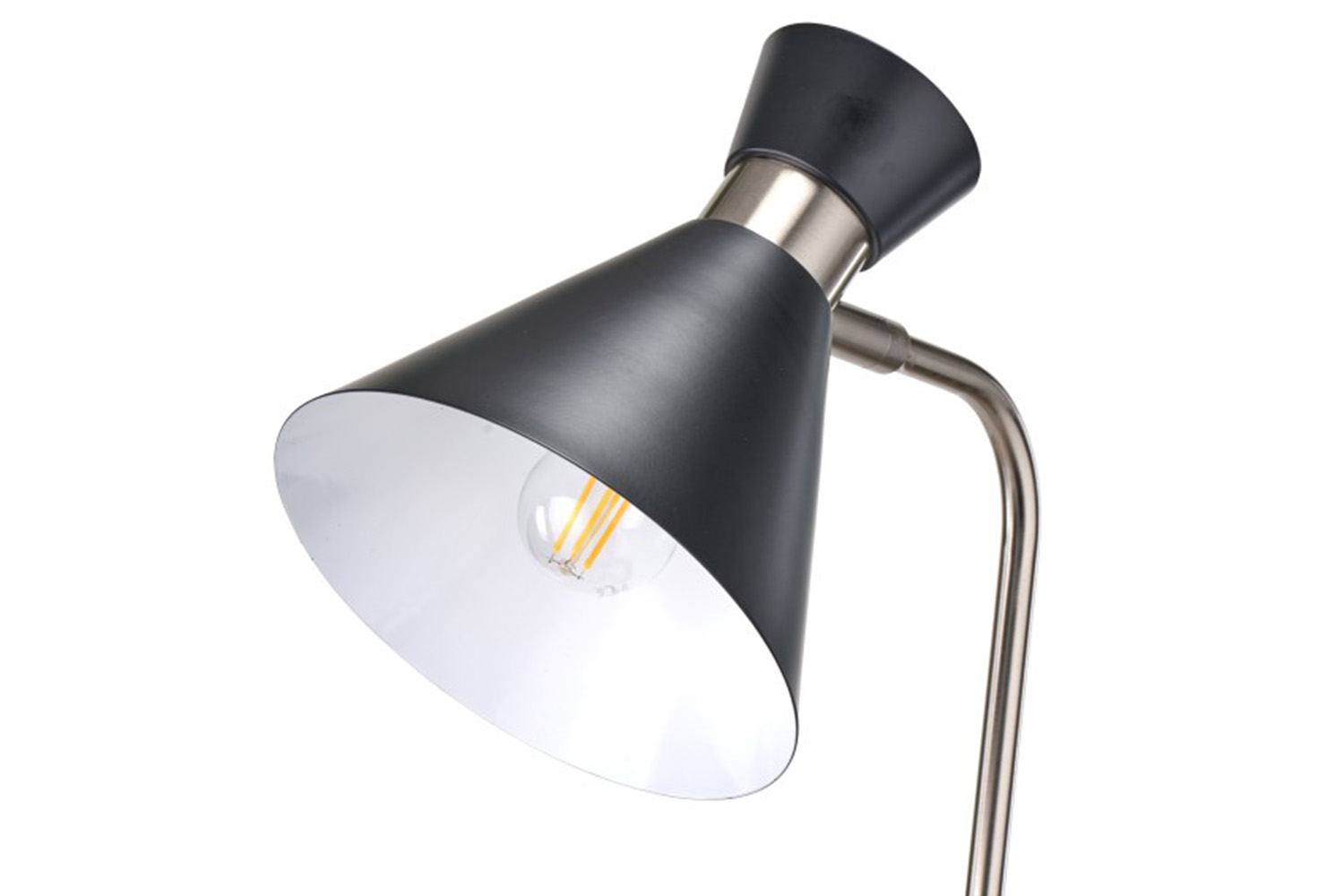 Redefine your home with the Benedict lamp, a beautiful and striking lamp that fuses modern style with functionality. Its striking metallic design and adjustable lighting create a warm, inviting glow that's perfect for reading, relaxing, or setting the mood. Crafted from black metal with a brushed silver metal, this piece offers a simple, yet elegant look. Pair with the matching table lamp for a more complete look to your space.