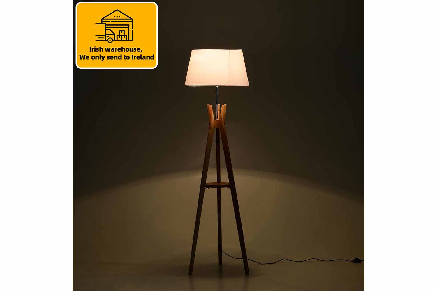 Light up your home in effortless elegance with this tall floor lamp from Homcom. Using bamboo for the body frame for natural strength and durability, it is crafted into a quirky three-legged design, giving it a unique look which is balanced and stable, featuring a middle shelf for convenient storage and display to give it extra character. With a large white fabric lampshade for a contrasting yet beautiful look, it is finished with a pedal switch on the cord to turn on and off easily. A modern twist on a classic silhouette which youll love inviting into your living space. Standard E27 socket fitted, takes a 40W max. bulb.