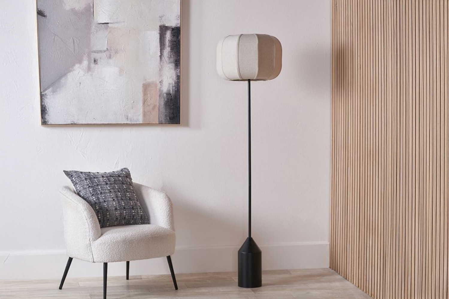 Light up your home in style with the Oscar floor lamp. It’s combination of classic style with a modern flair ensures this piece with elevate any room you place it in. It features a black metal base topped by a linen shade in a stunning natural hue, further complementing this piece. Matching table lamp also available.