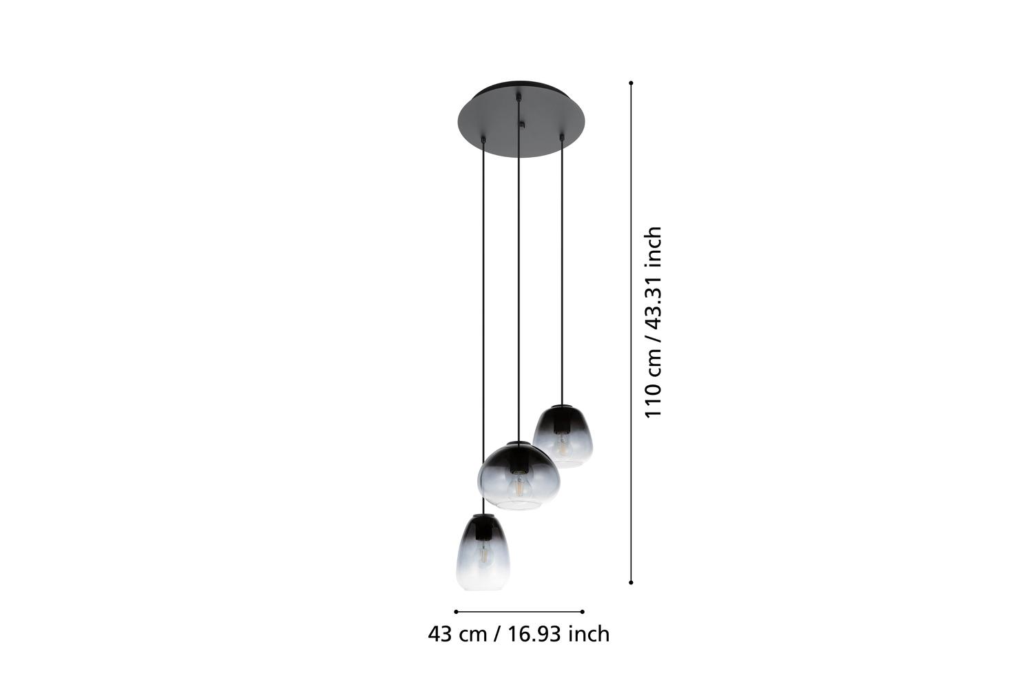 - Product Name: EGLO Aguilares Smoked Black Glass 3 Light Pendant
