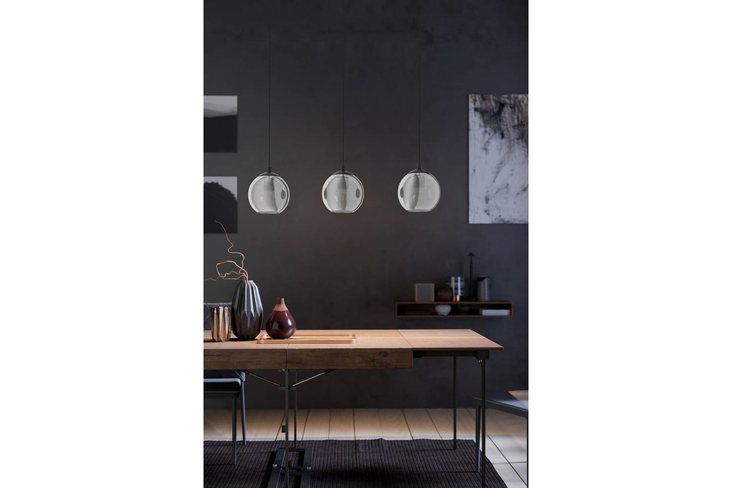 Rocking an elegant transparent black finish, the Ariscani 3-light pendant is a beautifully understated piece. This stunning lighting fixture features three round, smoked glass shades hanging from a long, sophisticated black canopy, promising to add a touch of luxury to any decor.