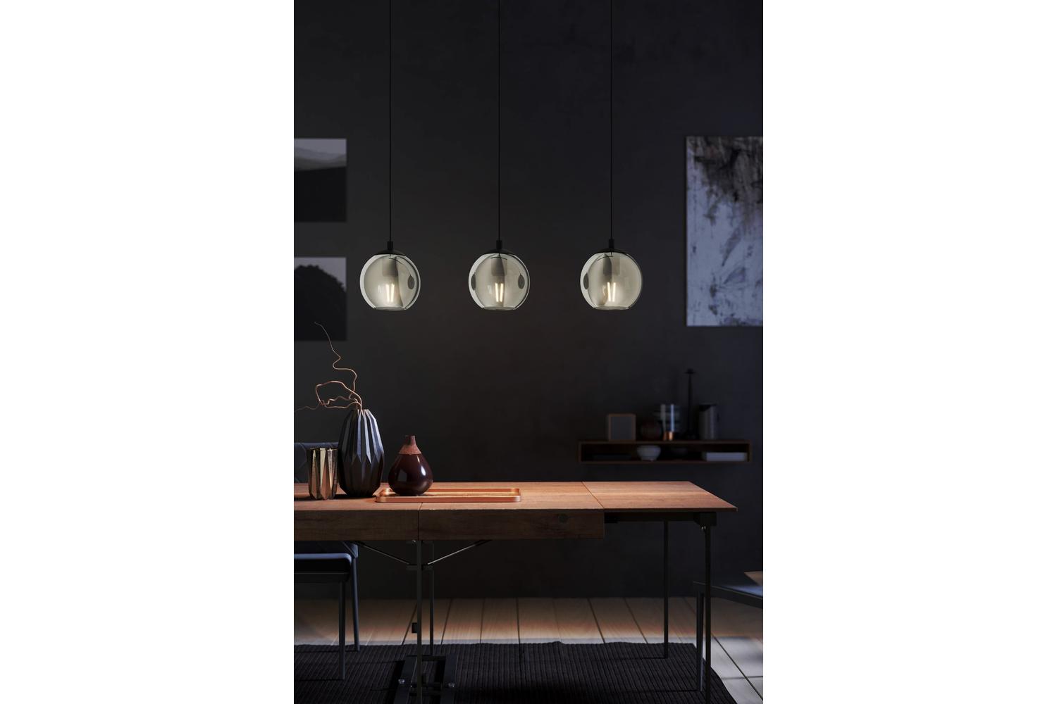 Introducing the EGLO Ariscani Smoked Black Glass 3-light Pendant; the perfect fusion of minimalist design and modern aesthetics. Crafted by revered homeware brand EGLO, this is a must-have for any contemporary living space.