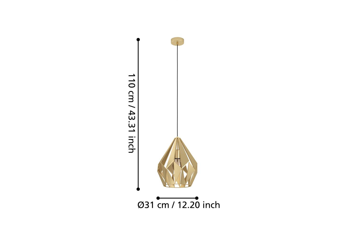 Ignite the magic within your space with EGLO Single Pendant Light E27 Gold CARLTON – an epitome of lighting dreams reinforced in reality. Step into a personal haven each time you switch this pendant light on as it gels seamlessly with other undertones and styles in your current melange of interior decor.