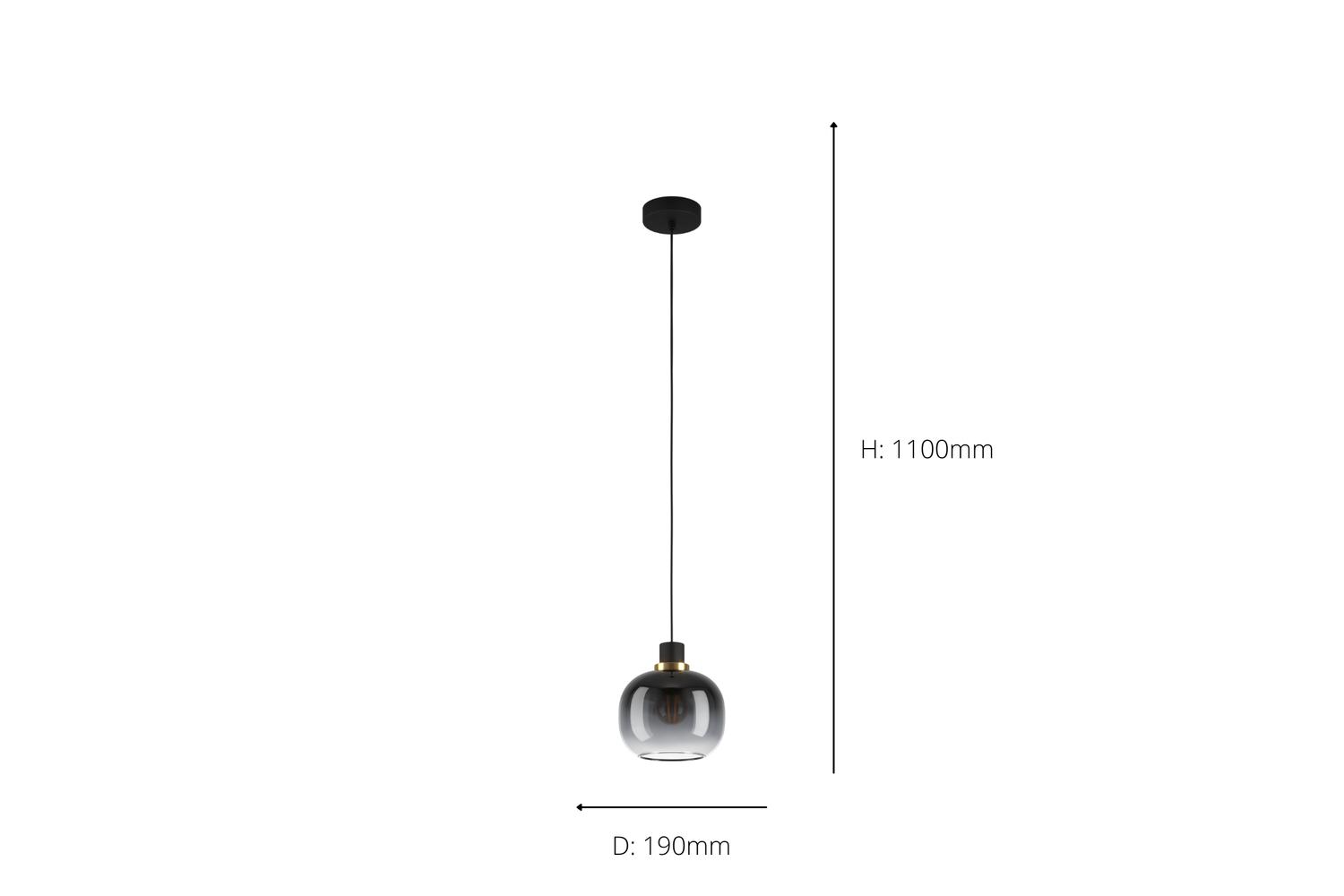 Illuminate your home in style with the EGLO Oilella 1-Light Hanging Pendant Light, boasting a dramatic fusion of retro inspiration and contemporary allure. This elegant ceiling fixture takes homeware lighting to new visual heights, featuring black-to-grey smoked gradient glass, crowned by an accent of brass-coloured steel for that show-stopping sparkle.