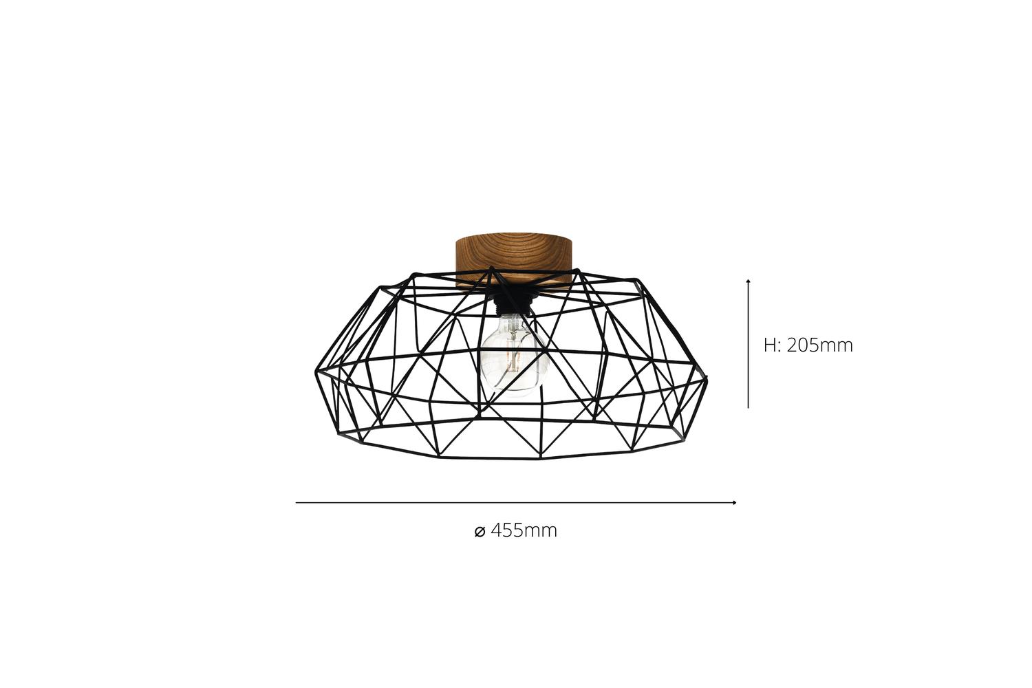 The natural wood canopy draws inspiration from timeless vintage aesthetics, adding a generous sprinkle of nostalgic charm to the piece. Its chic, black geometric wire lampshade sports a modern aesthetic, designed to accentuate the room's ambient light. Get ready to enchant your space with a dynamic display of light and shadow, an exquisite sensory experience brought alive by this unique and visually engaging component.