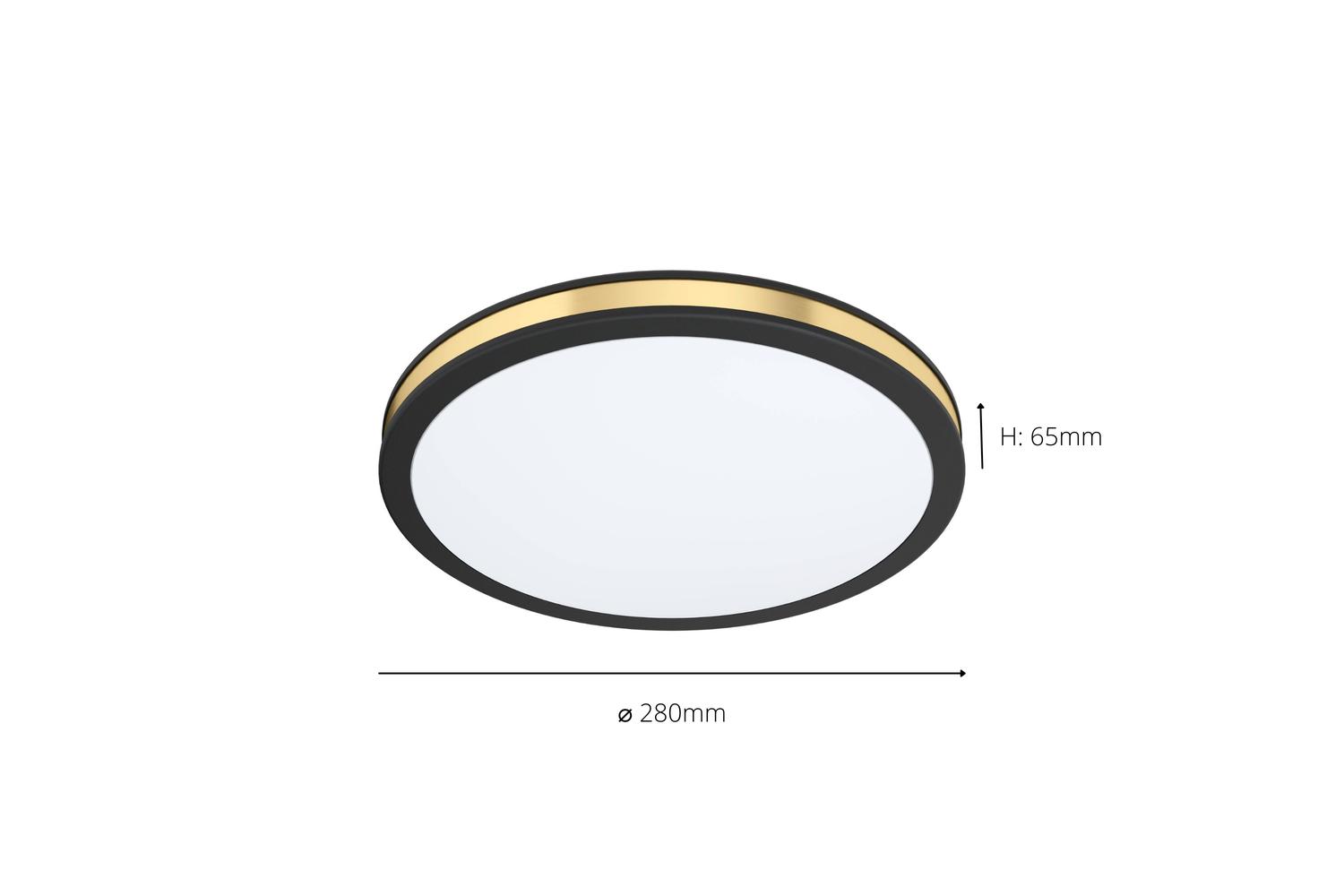 EGLO Pescaito LED BlackGold Flush Round Ceiling Light: compact, modern, and efficient, breathes elegance into your home décor. Perfectly suit the tastes of Irish homes, this ceiling light stylishly marries a dark black metal frame with a refined gold-coloured plastic detail for an edgy yet chic presence. Its versatility stretches from living rooms to bedrooms, or even hallways and dining spaces with its adaptable design.