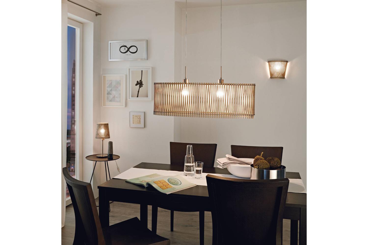 The EGLO Sendero Maple Wood Pendant Light casts a superb contemporary charm into your living space. An elegant combination of maple wood slats and matte nickel metal canopy, the Sendaro Pendant Light is a stunning centrepiece for your living room or dining area. Rich in aesthetic appeal, this pendant light beautifully complements modern design interiors. Expertly crafted by EGLO, its every feature refines sophistication, effortlessly elevating your homeware ensemble.