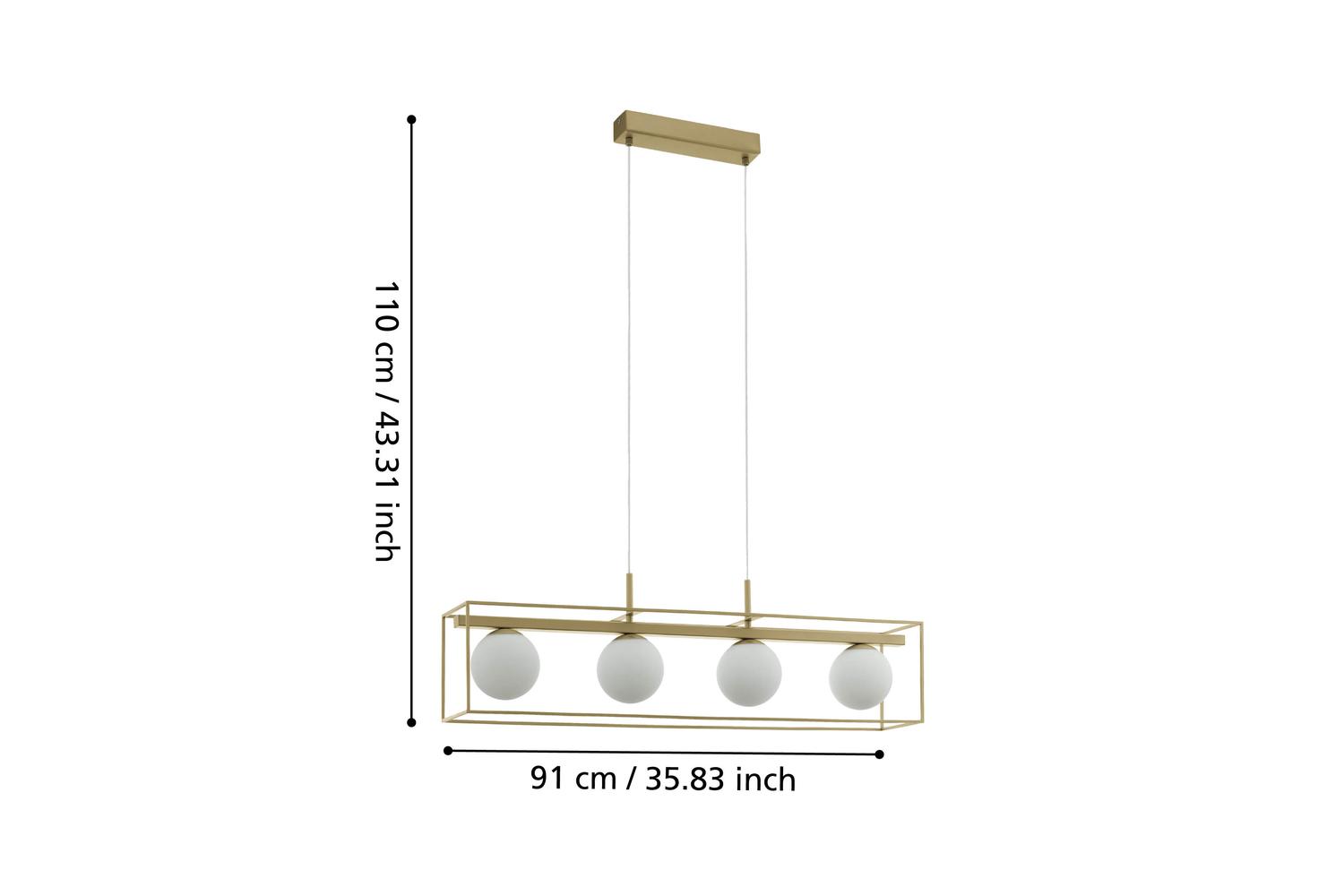 Effortlessly merge creativity, glamour and modern design with the EGLO Vallaspra Champagne White Glass Modern 4 Light Pendant. Crafted by the renowned lighting brand EGLO, this exclusive homeware product promises to elevate your home's aesthetic to new heights. Its distinctive design and remarkable illumination make it an excellent centrepiece for your living room or dining room, casting a soft, warm glow throughout your space.
