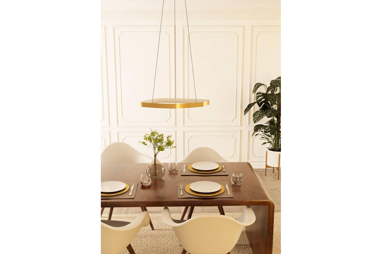 The Vallerosa pendant light is designed as an organically shaped steel pendant with hints of brushed brass, making it an irresistible piece of homeware. Fashioned with an integrated LED profile that adds modernity to the overall disposition, it effortlessly extends a warm and pleasant white light for an inviting and cosy ambience- making it an optimal choice for Irish homes looking for that extra touch of elegance and class.