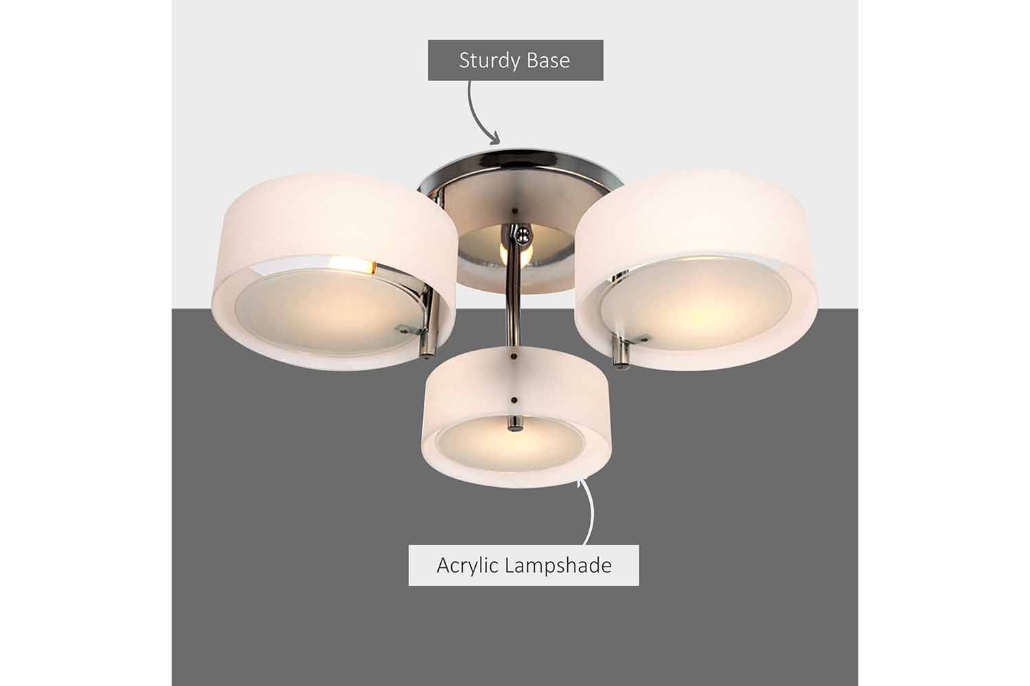 This 3-Light Flush ceiling lamp light from Homcom will enhance the ambiance of your décor. It features frosted glass that makes it ideal for most ceilings heights are rooms sizes. The amazing moon style lighting adds enough drama to the room to impress.