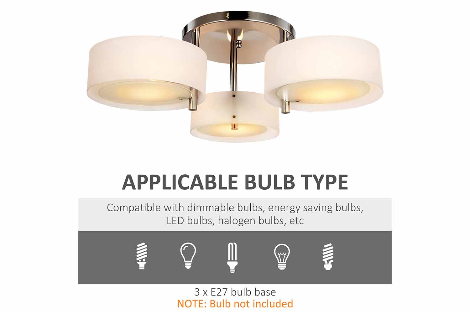 Bulbs not included, you need to buy E27 bulbs