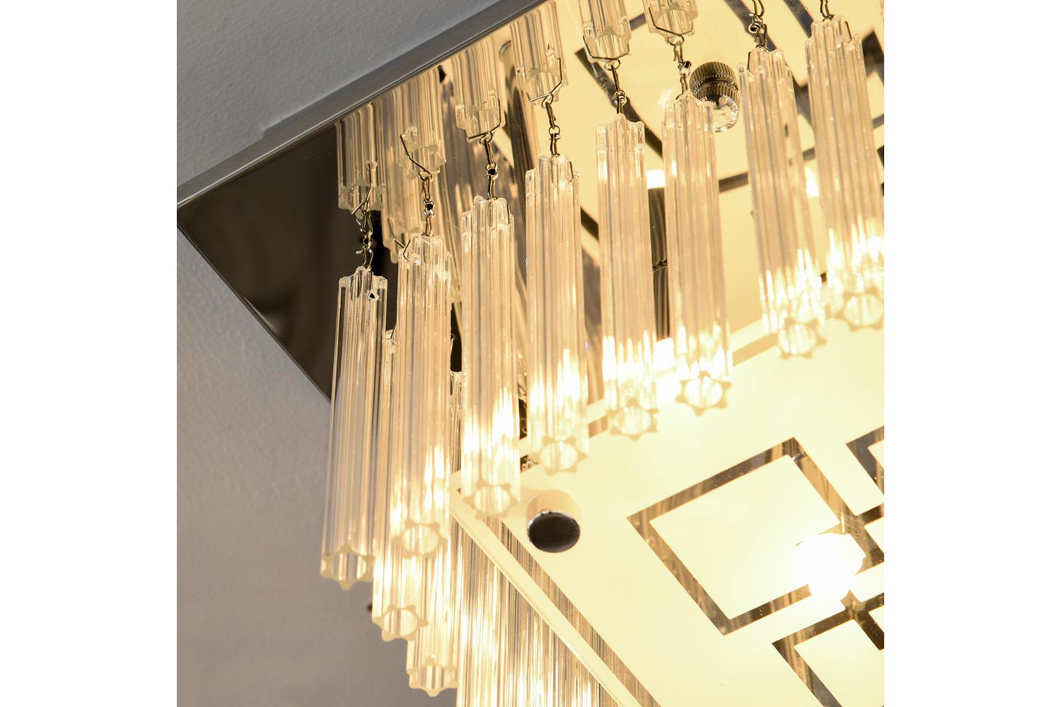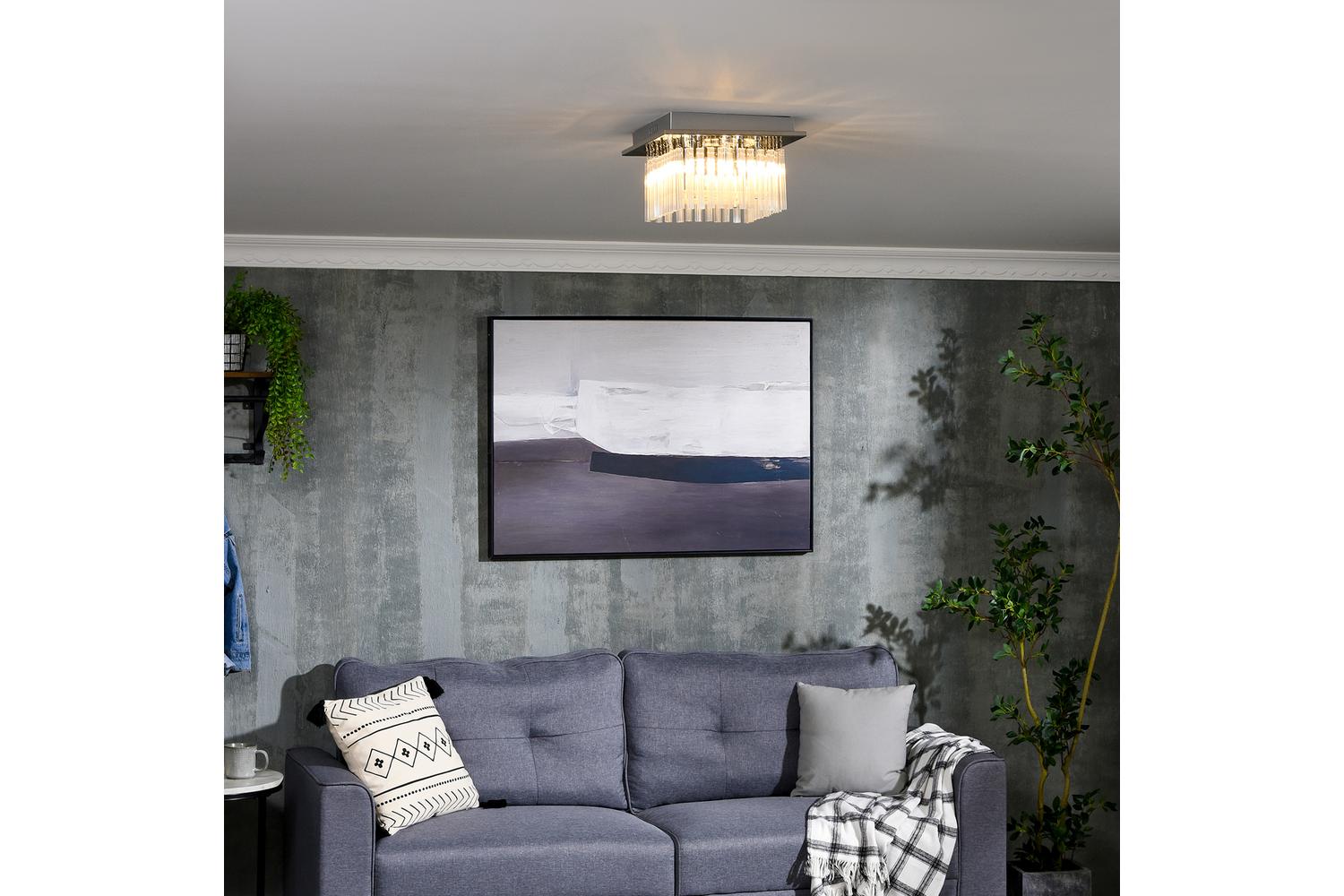 Unravel elegance and sophistication with this stunning square-shaped homeware necessity, embellished with sparkling raindrop-inspired crystal lights. Inspired by Irish love for harmony and glamour, this unique lighting can complement and enhance the beauty of your Irish home or office. The frosted glass shade protector ensures a gentle glacé on the light, thereby creating a tranquil, serene atmosphere in your home.
