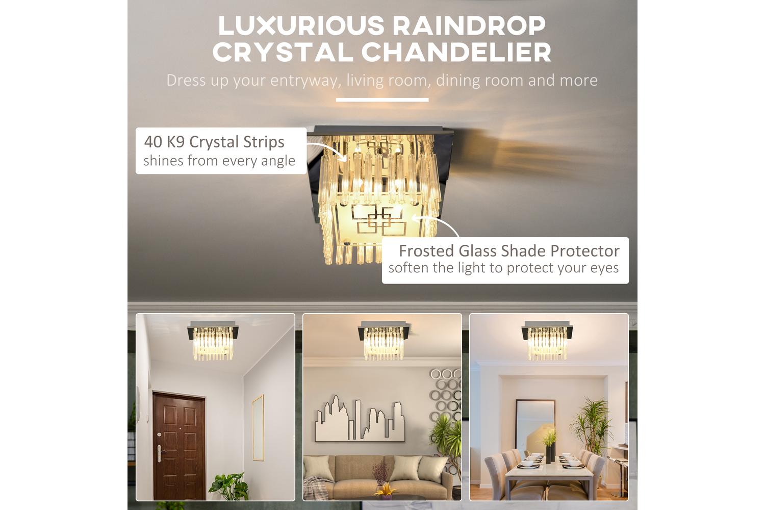 Step into the world of luxurious illumination; envelop your home in a celestial sprinkle of elegant beauty with the HOMCOM Modern Raindrop K9 Crystal Ceiling Light.