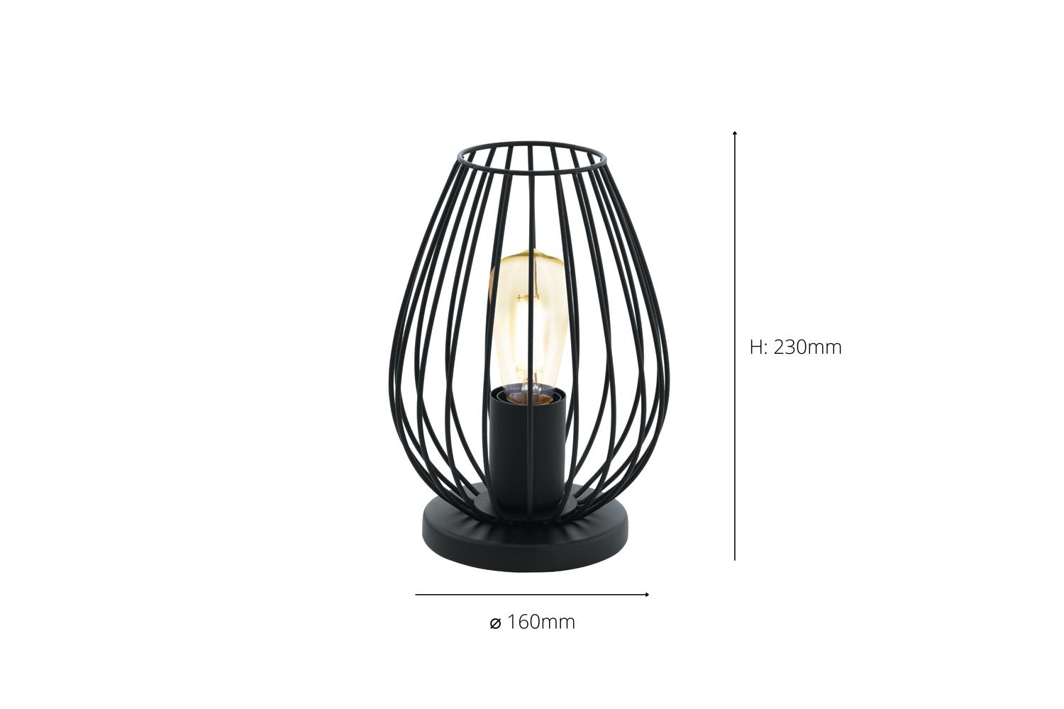 Introduce warmth, style, and a touch of industrial charm to your space with the EGLO Newtown 1-Light Vintage Table Lamp With A Black Caged Shade. The lamp's bold design combines a sturdy black metal base, an oval wire lampshade, and a teardrop silhouette for a versatile, vintage-inspired aesthetic. Add a measure of subdued sophistication to your modern interior while dispersing soft light throughout your rooms to craft an ambience filled with homely allure.