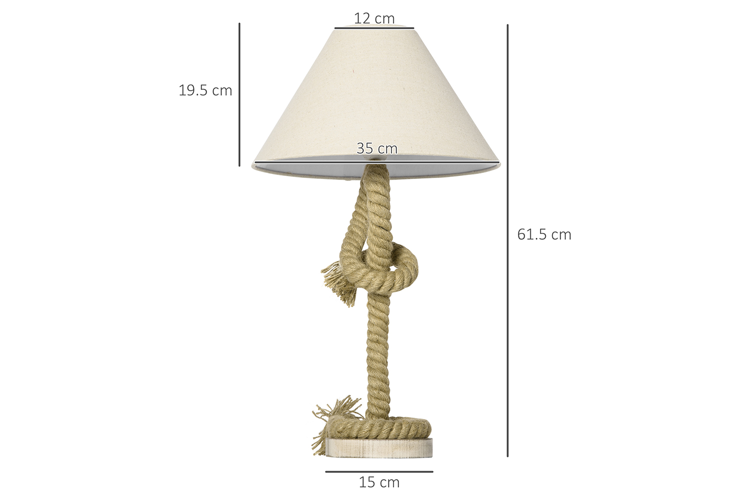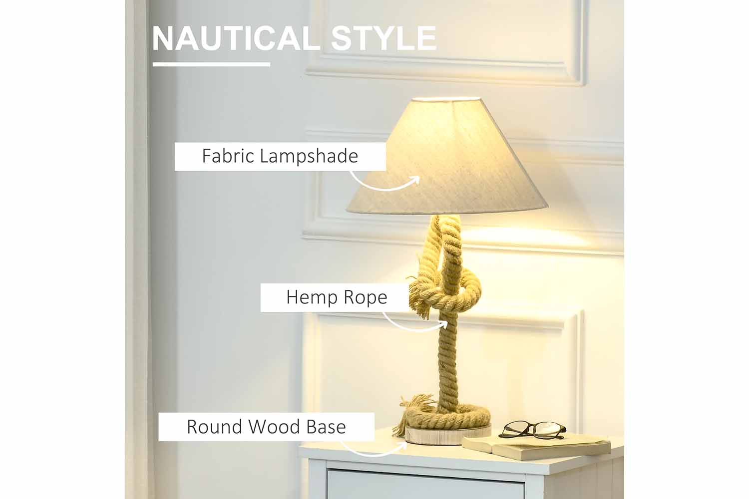 Let this Homcom natural-themed bedroom lamp bring a unique look to your home. The underlying frame is made from steel for strength, wrapped with hemp rope for a cool look. The wooden base keeps the light weighted. The fabric lampshade of the bedside lamp gently emits light to create a soft ambience. Relight the dull corners in your home - wherever and whenever.