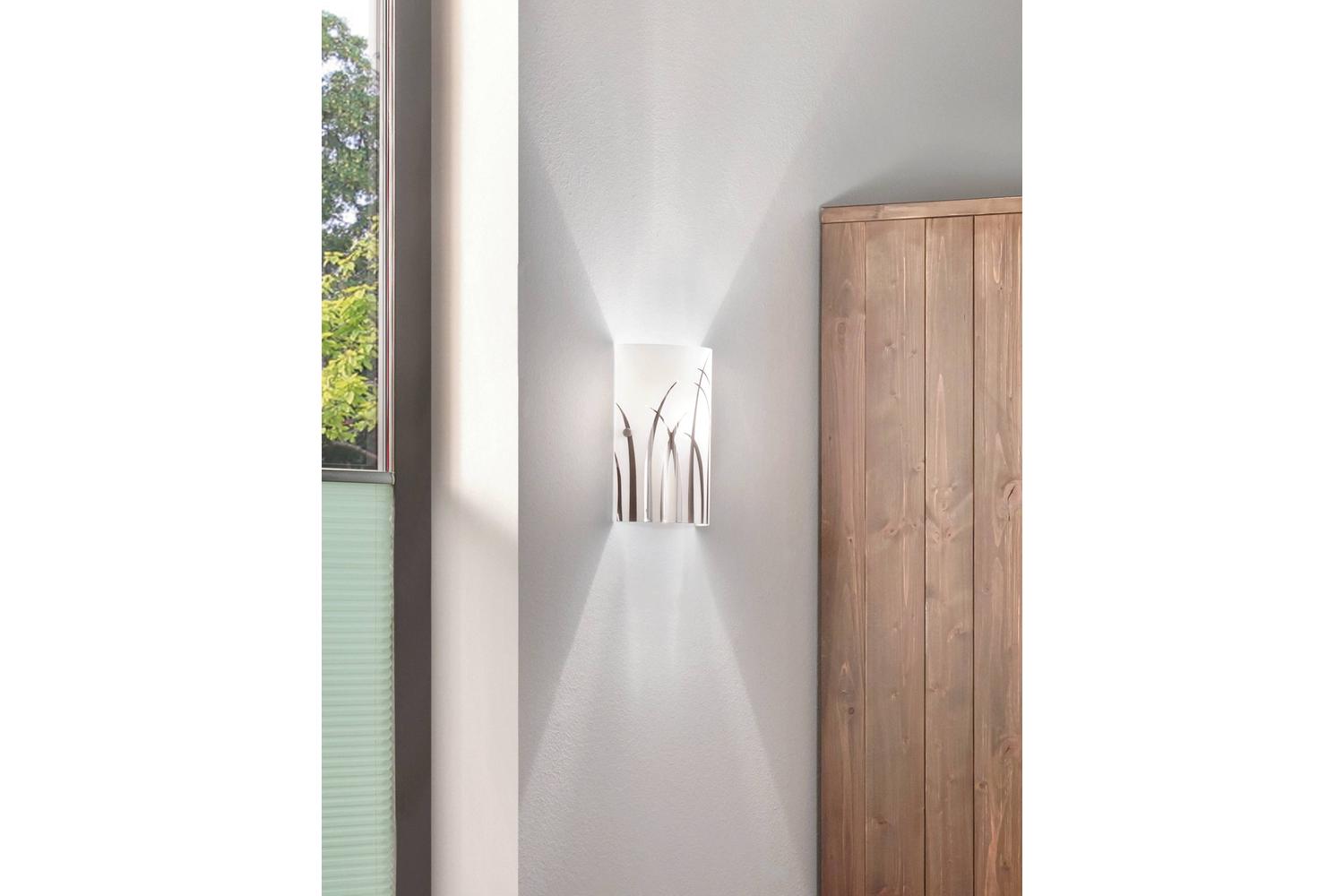 The EGLO Rivato Wall Light, beautifully festooned with white chrome decoration, is an exquisite lighting solution for your home. Its unique, curved design inspired by nature and featuring a grass motif seamlessly integrates into any home decor whether it be modern, rustic or classic.