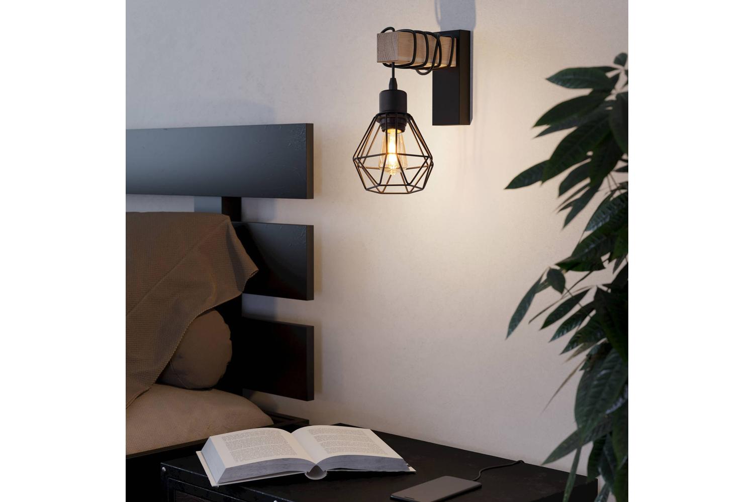Note however, that this EGLO Townshend 5 Black wall light requires an E27 bulb which is not included in this product package. With an individual illuminated spotlight design, it produces focus-oriented and directional lighting to highlight specific areas inside your living room, bedroom, dining room or hallway effectively. A caged shade crafted in a black wire-style steel plays with the light for a characteristic and unconventional finish.