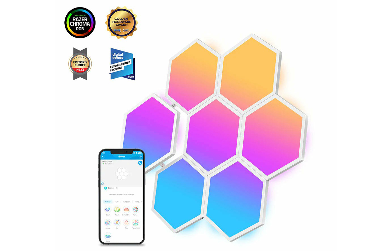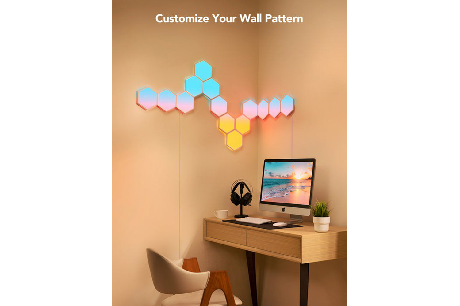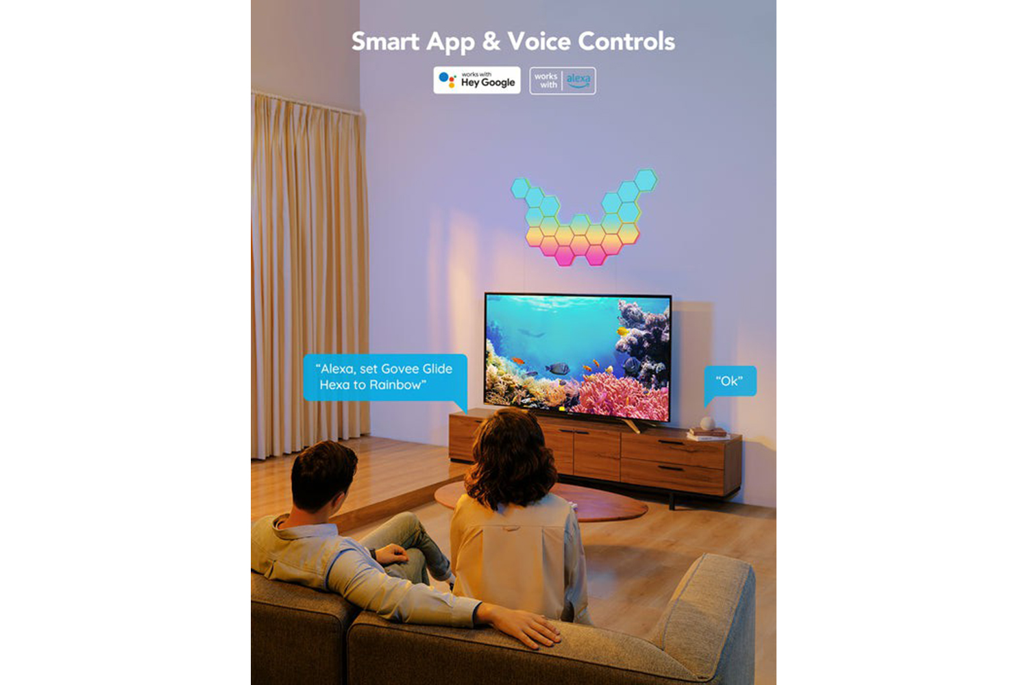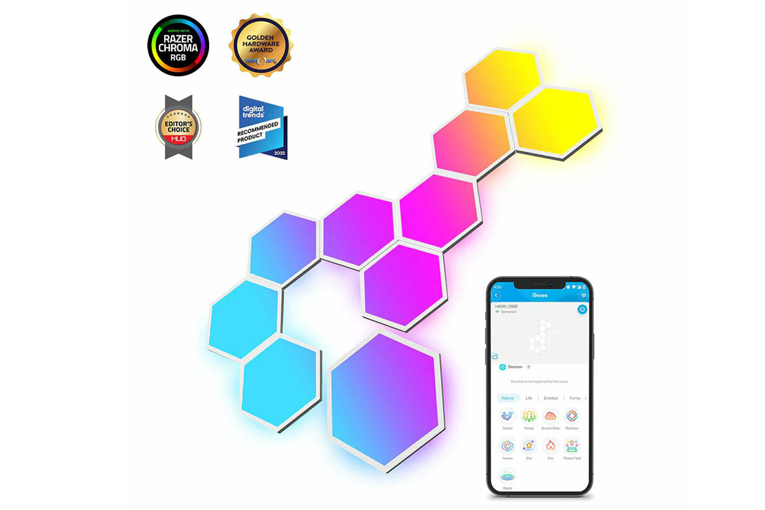 Govee Glide Hexa Light Panels are composed of 10 panels that can be assorted into various shapes. It can be controlled using your favorite voice assistants such as Alexa and Google Assistant as well as the Govee Home App. You can even customize your design, effects, colors, and more.