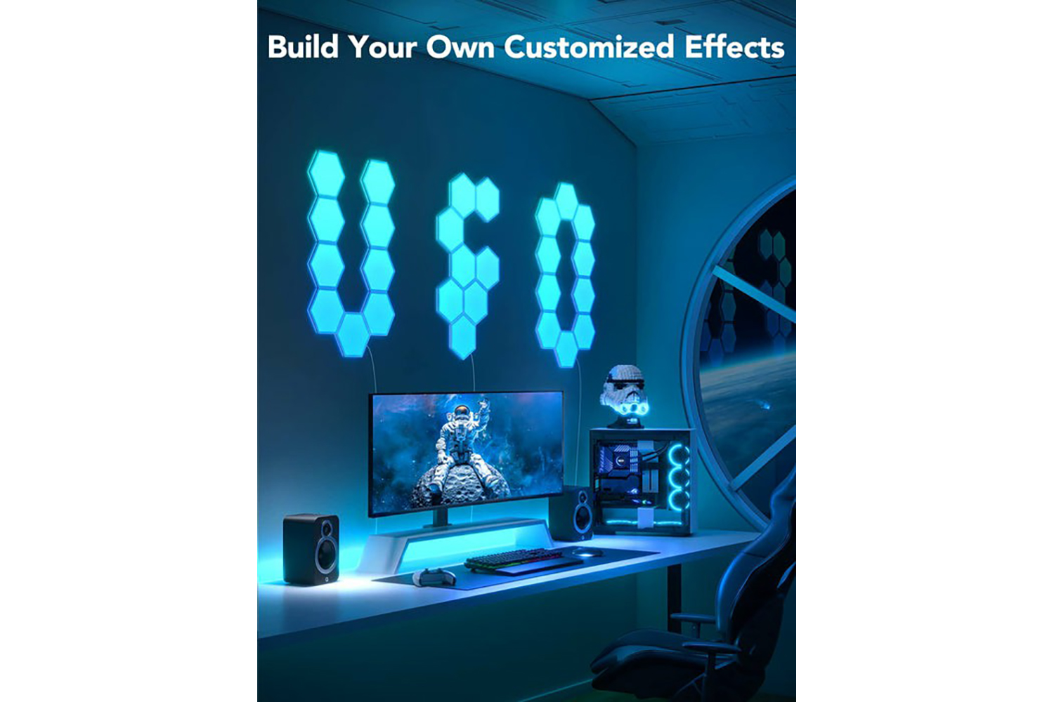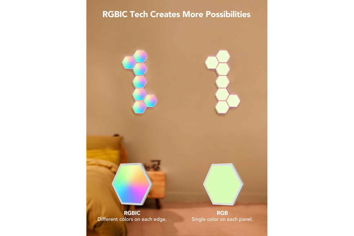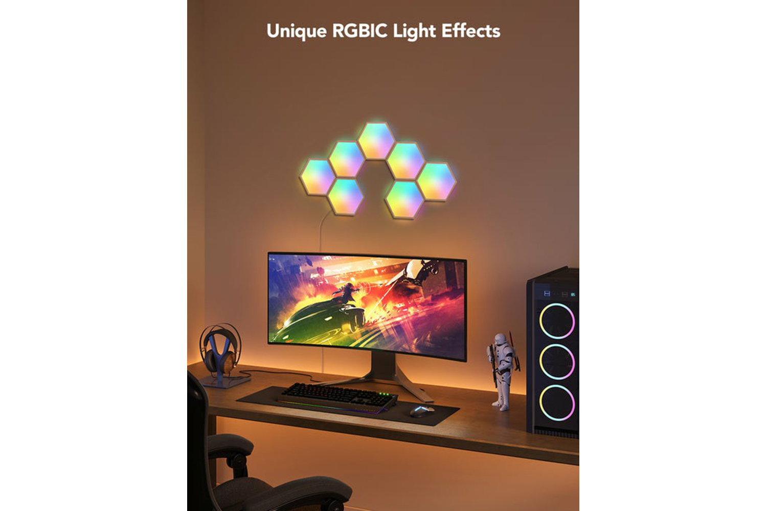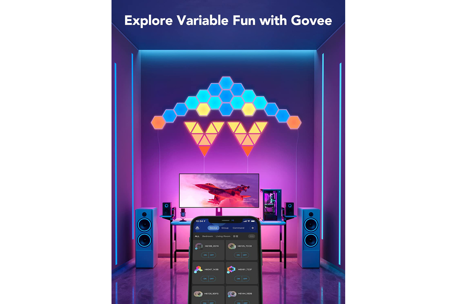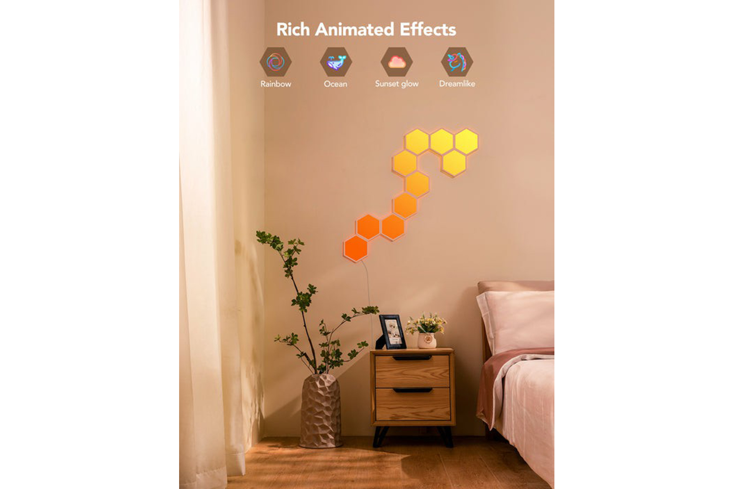 Govee Glide Hexa Light Panels are composed of 10 panels that can be assorted into various shapes. It can be controlled using your favorite voice assistants such as Alexa and Google Assistant as well as the Govee Home App. You can even customize your design, effects, colors, and more.