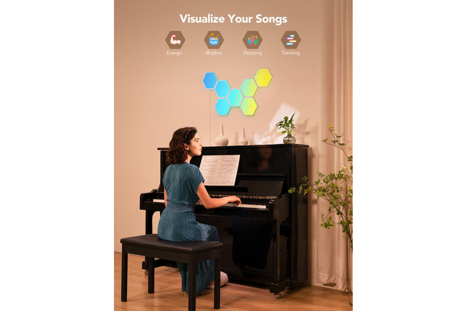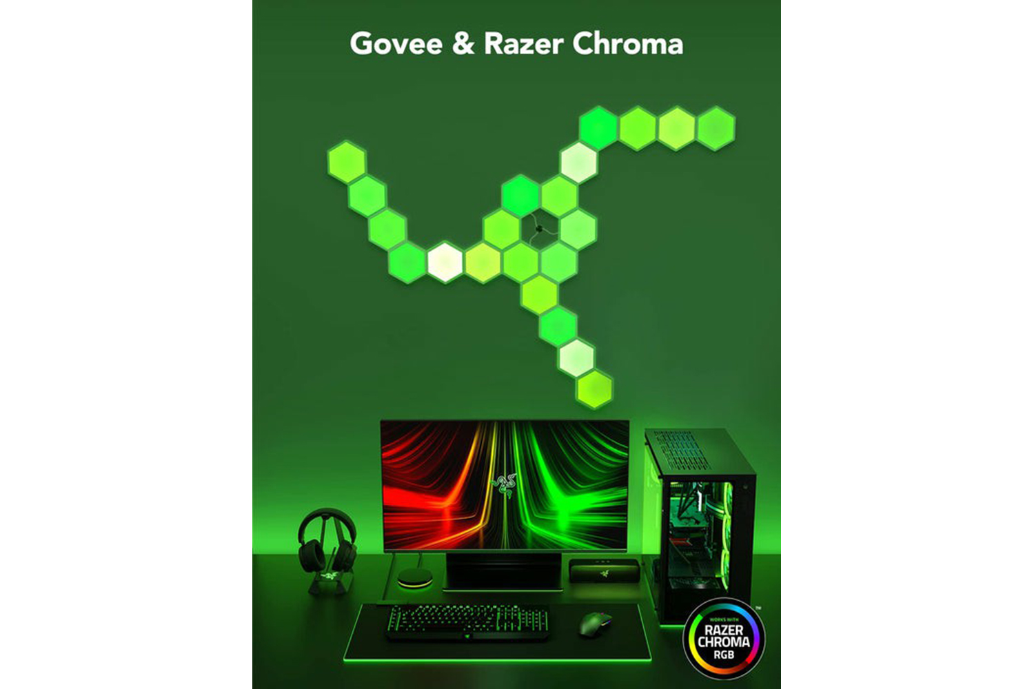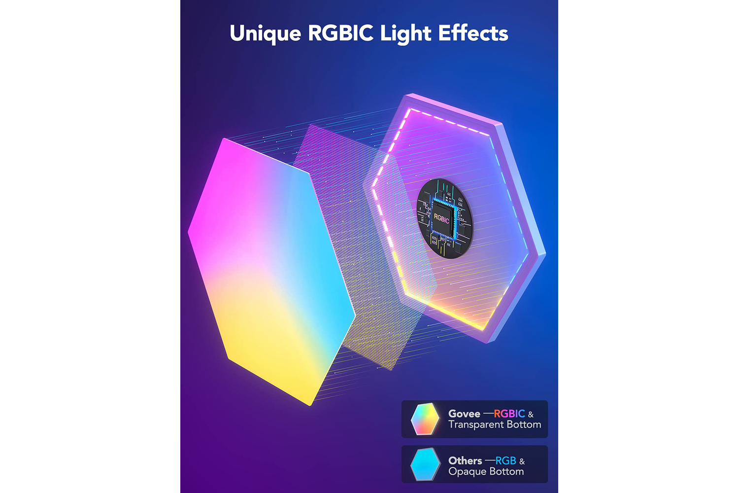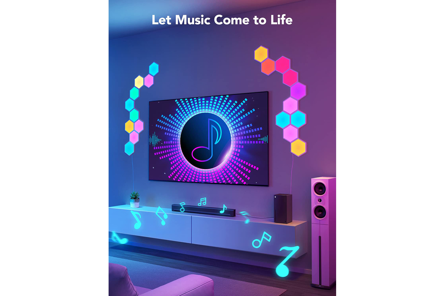 Govee Glide Hexa Light Panels are composed of 10 panels that can be assorted into various shapes. It can be controlled using your favorite voice assistants such as Alexa and Google Assistant as well as the Govee Home App. You can even customize your design, effects, colors, and more.