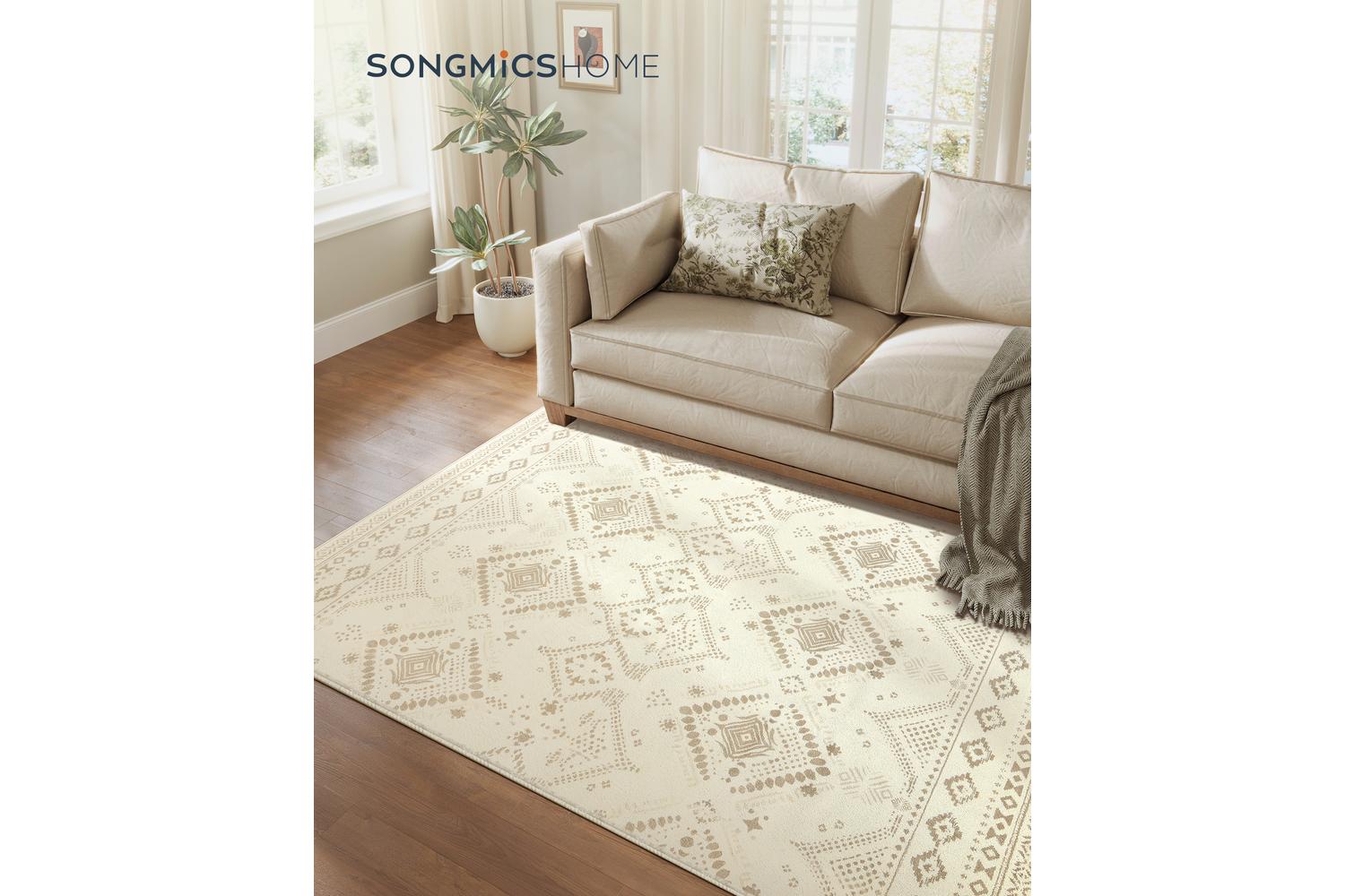 Transform your home with the Boho Rug Sand Beige from SONGMICS HOME, a perfect blend of comfort, style, and practicality designed for Irish living. This large 160x230cm rug brings a touch of bohemian chic to any space, making it an ideal choice for bedrooms, living rooms, or cosy reading nooks. Its soft, sand beige tones and original boho-inspired patterns create a welcoming atmosphere, effortlessly complementing both modern and traditional interiors across Ireland.