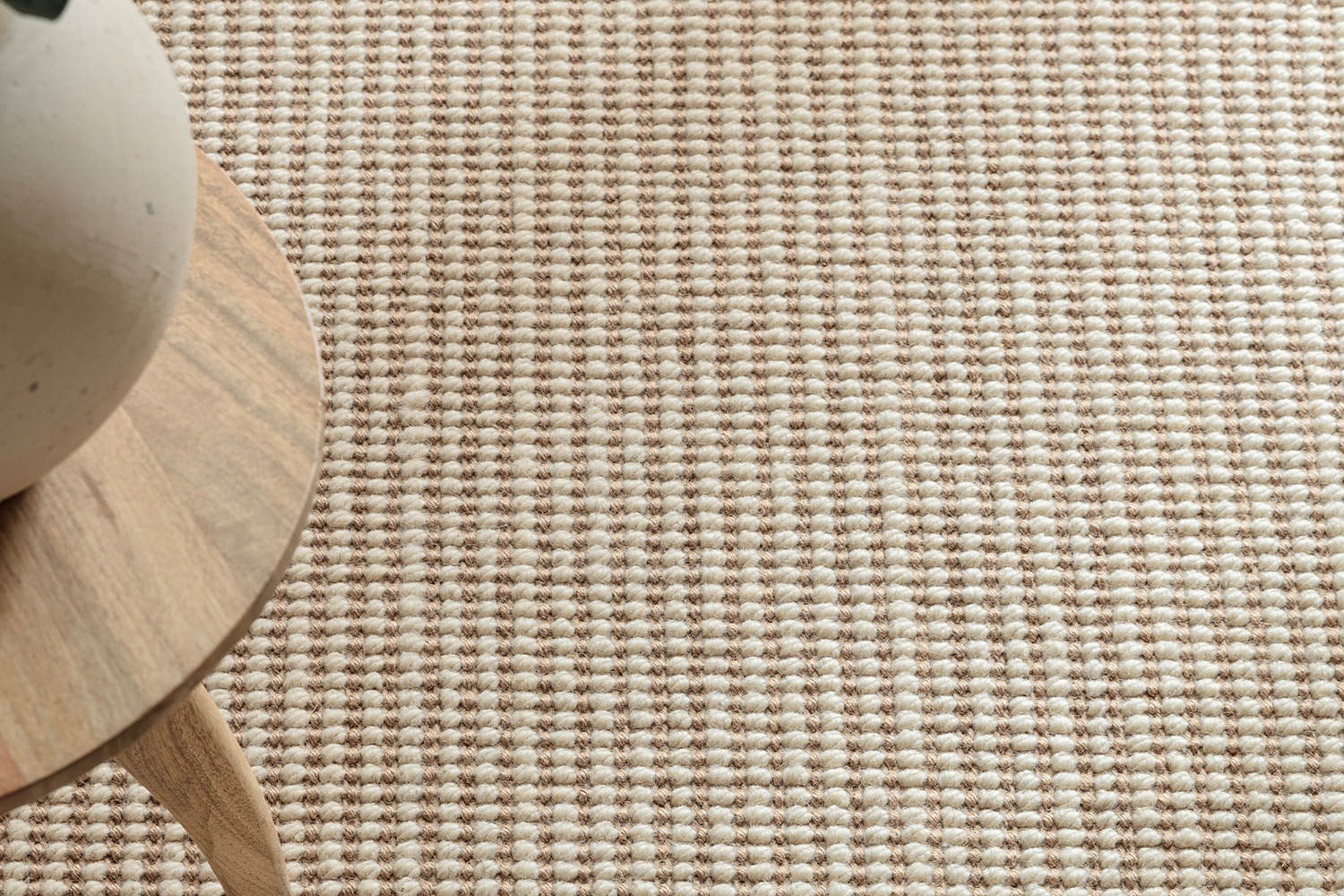 The Korra Loop Linen Cream rug introduces a calming sense of balance to any interior. Woven from a thoughtful blend of wool and jute, its central field offers a soft, tactile surface with a natural warmth underfoot. Light beige and off-white threads create a subtle grid pattern that adds depth, gently brightens a room, and helps disguise signs of everyday use. Surrounding this textured centre is a clean linen-cotton border that frames the rug with understated contrast, giving definition to living rooms, dining areas, or quiet reading corners. The tight, consistent weave is crafted to endure daily life while maintaining its refined, composed appearance. Available in multiple sizes.