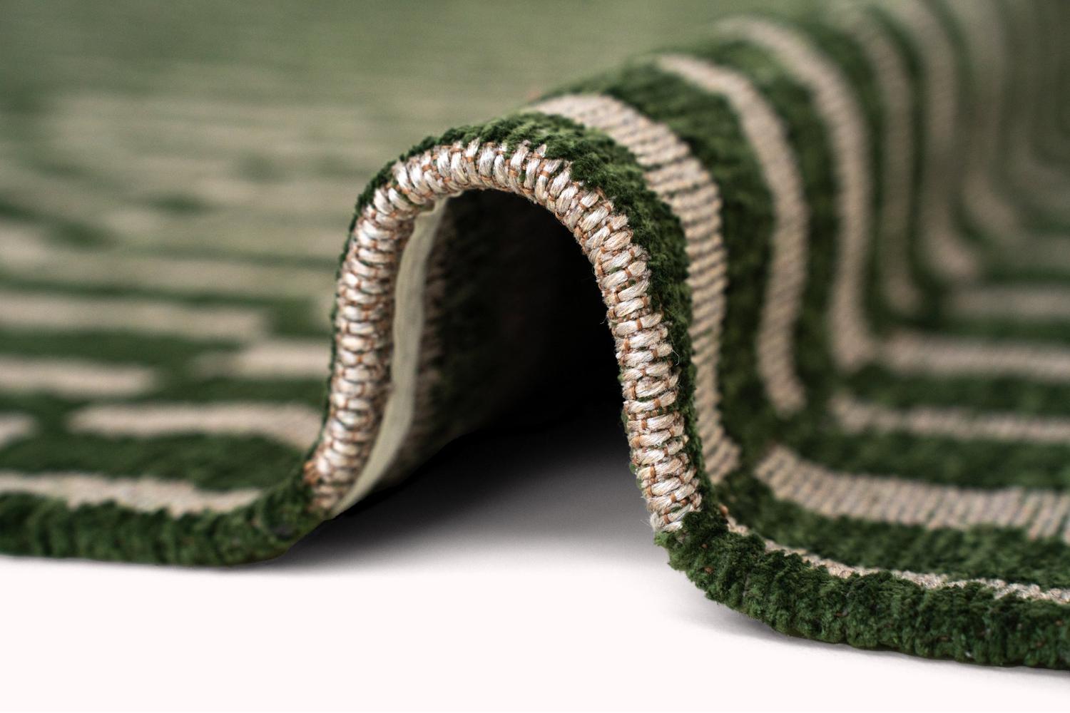 Crafted with sturdy 100% polyester, the allure of this rug is further elevated by its vibrant Oasis hue – a striking vibrant green shade. This rug is mechanically woven using jacquard flatweave processes, perfectly blending the simplicity and splendour of handwoven tradition with a contemporary pop of colour. The result is a perfect balance of culture and innovation sure to enhance any living space with its refreshing charisma.