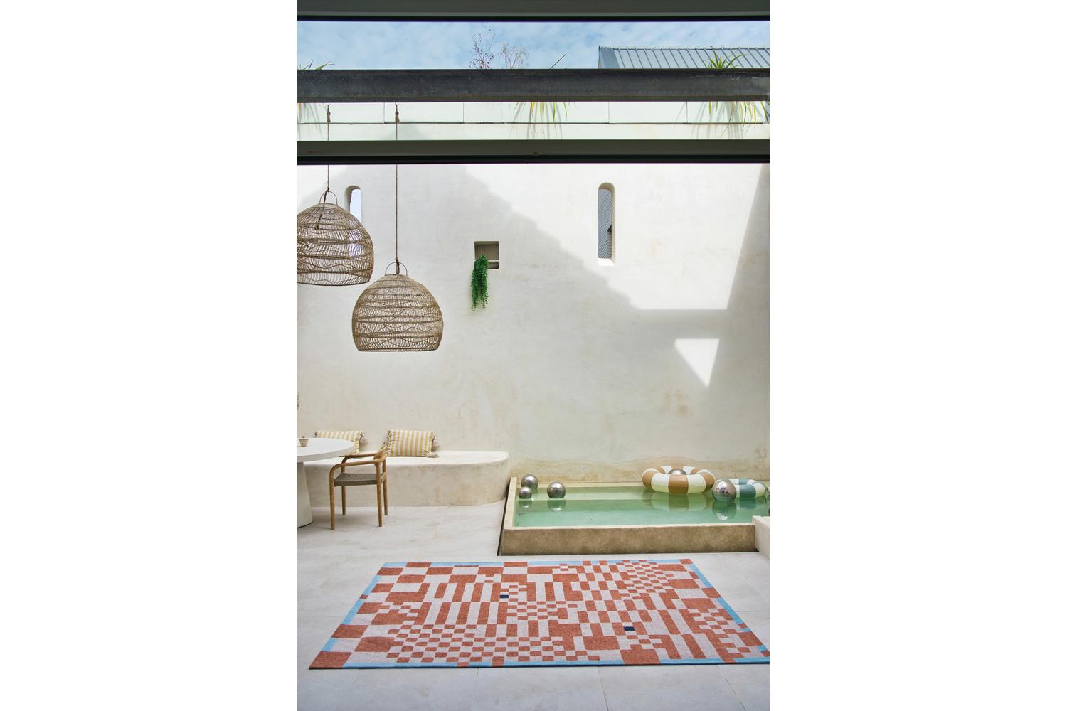 Imagine walking on a carpet that brings a flare of artistic expression right beneath your feet. The Rug pays homage to the classic chess design in an utterly contemporary way. It fragments the standard pattern to create an energetic aesthetic that balances harmoniously with the chic, nude colour palette. The brightly coloured squares breathe life into your living-room, defining each segment while introducing a dynamic visual experience.