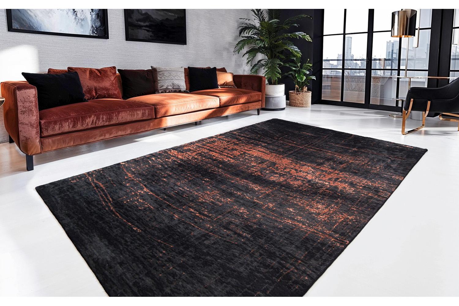 Its Soho Copper shade stands out against the dark background, adding warmth and richness. Made from 100% polyester, this durable and long-lasting rug embraces both style and quality, ideal for sprucing up your living room or bedroom decor. Whether you are re-creating a vintage-chic vibe or looking for a statement piece to get your guests talking, this rug envelopes both concepts in one item.