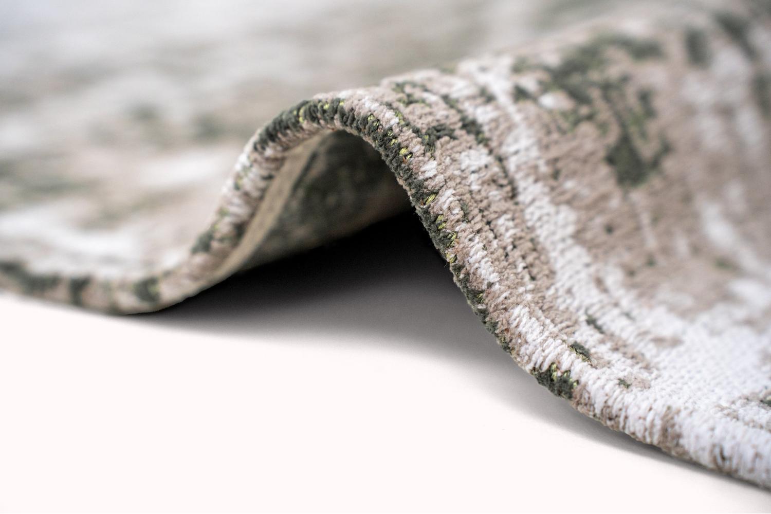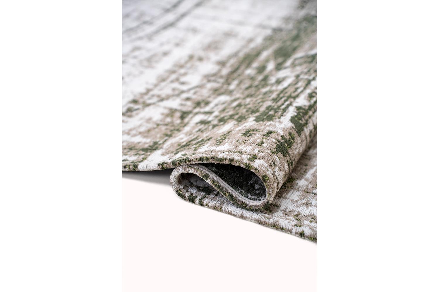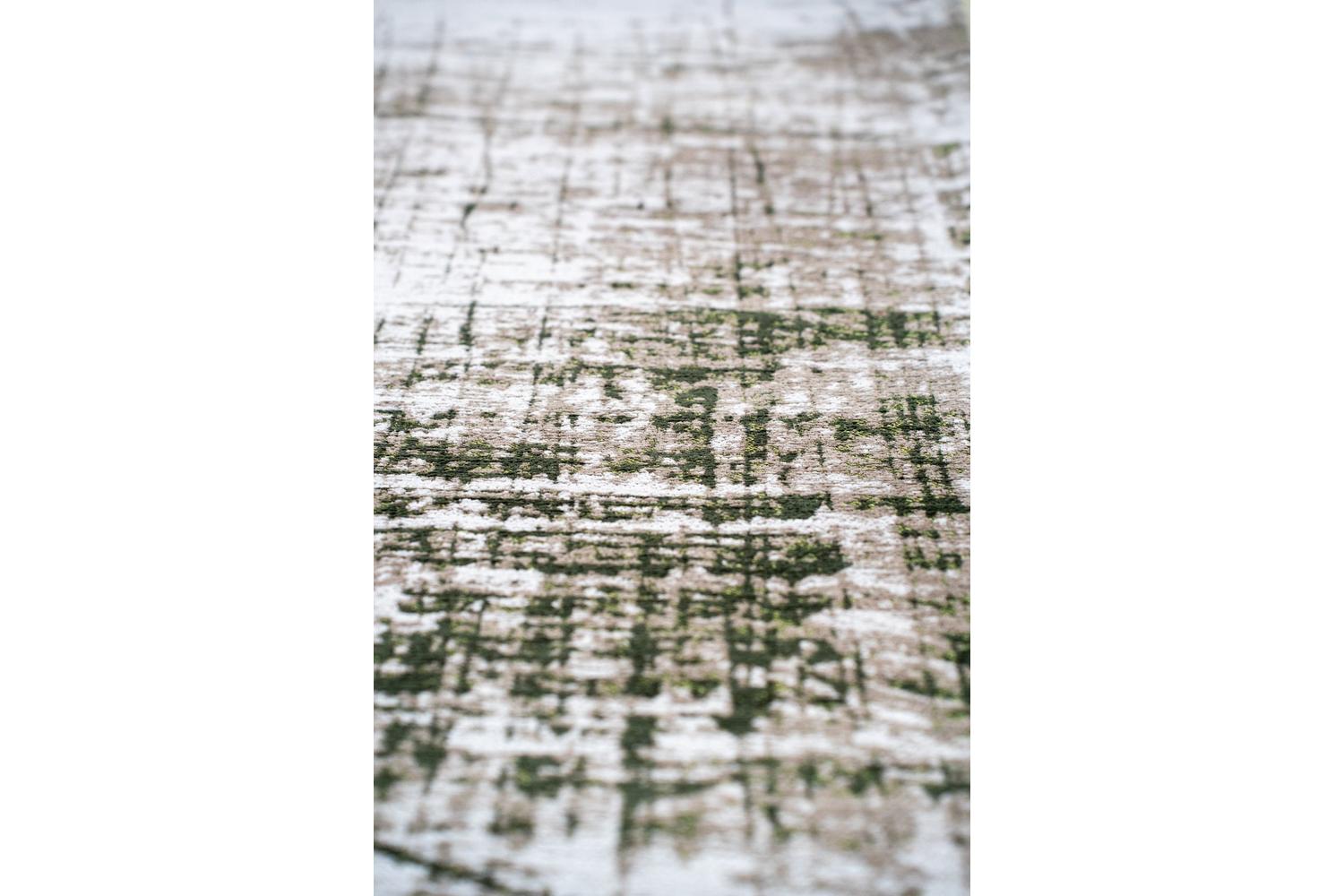 Boasting an innovative Griff design and radiating central green hues, this rug paints a privileged snapshot of the era. Just like the cross-culturally significant Women's Liberation era and the Vietnam protests, this cultivation of our brand, LOUIS DE POORTERE, combines raw, distressed textures and sharp lines, perfectly mirroring the optimism and disruption that once ran rife.