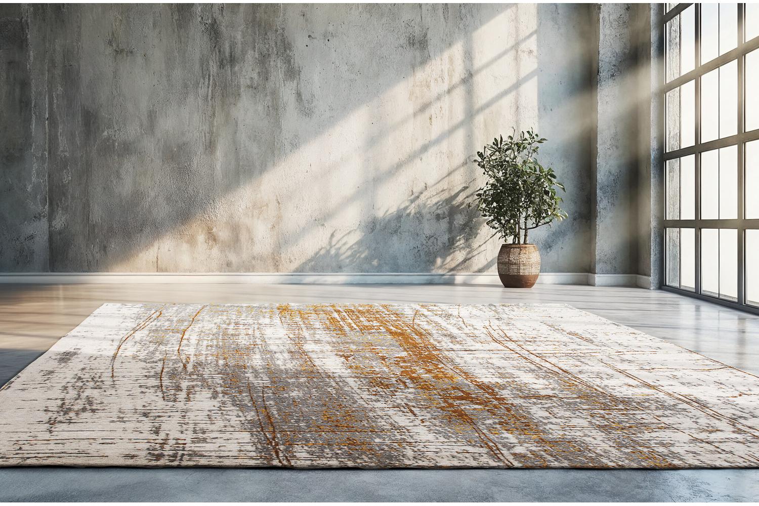 The amazing mix of sharp lines and distressed textures stimulate imagination and create a powerful impression of change and creativity. As an homage to action painting, the unique design captures the bold, raw energy of the era, adding a distinct aesthetic charm to your home decor. Its striking yelloy tones exude bespoke elegance, and the Columbus Gold colour lends your space a warm, welcoming finish.
