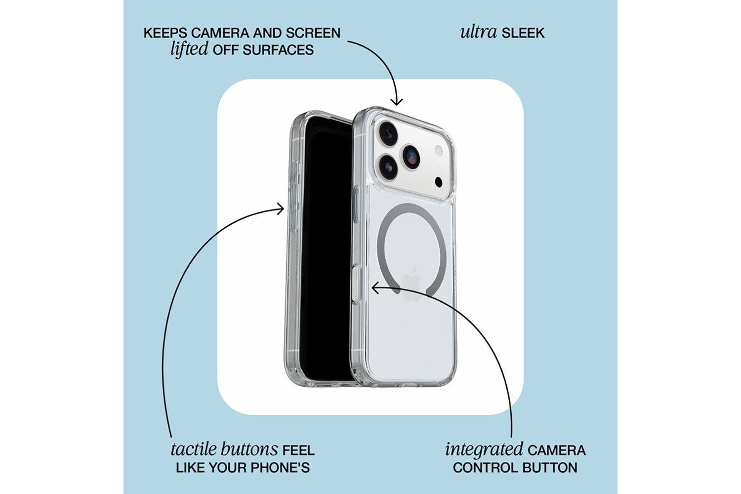 Secure your style and your phone with Symmetry Series. Ultra slim in a range of finishes, this thin iPhone case dials in your look while hugging your phone's sleek shape and defending against hard drops. Every phone function works flawlessly, and the case features an integrated Camera Control button for seamless swiping, clicking and capturing. Built-in magnets snap securely to MagSafe chargers and accessories. The screen lip and raised edges around the camera provide an additional buffer for your camera and screen.
