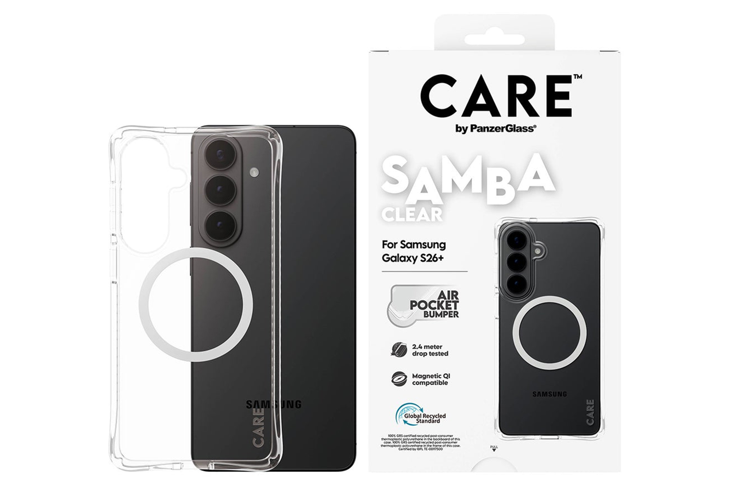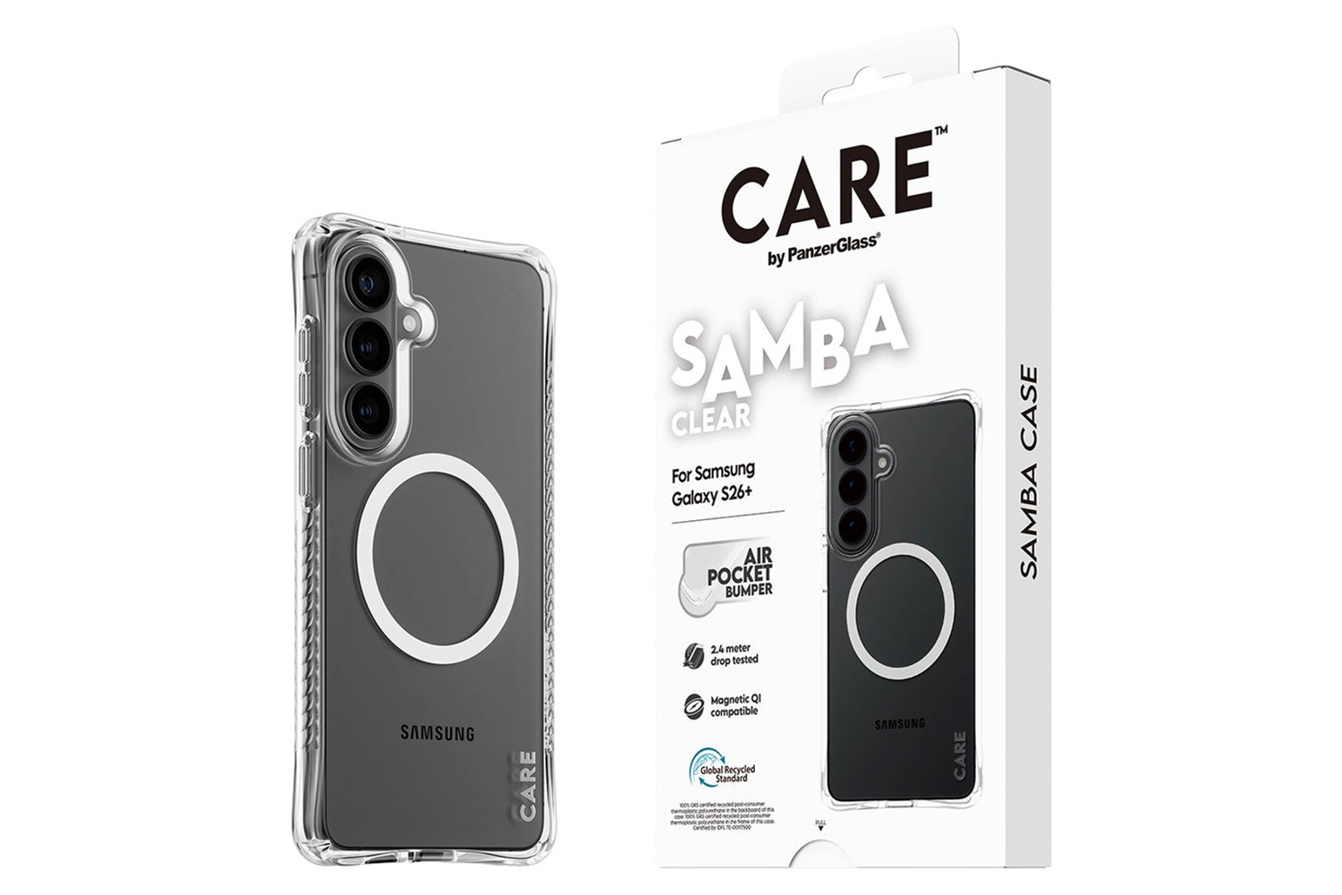 Protect Your Tech in Style Elevate your phone’s look while keeping it protected with the Fashionable SAMBA Case from CARE by PanzerGlass. Designed to be both stylish and sustainable, this case is made from 100% recycled TPU and features enhanced corner protection to protect against everyday bumps and drops. The smooth grip ensures unmatched comfort, making it as functional as it is fashionable. Seamlessly Qi compatible, this case ensures your device stays charged and ready, without compromising on style. Whether you’re accessorizing for the day or powering up on the go, this case has you covered with flawless connectivity to all your Qi accessories. DARE TO CARE CARE is a playful and protective international tech and lifestyle brand featuring a range of products created using the highest quality materials and influenced by fashion, art, and music. PanzerGlass care about people and the world PanzerGlasse live in. PanzerGlass care about sustainability and self-expression. And PanzerGlass care about tech and extending its lifetime. So protect your tech in style and show the world you CARE.