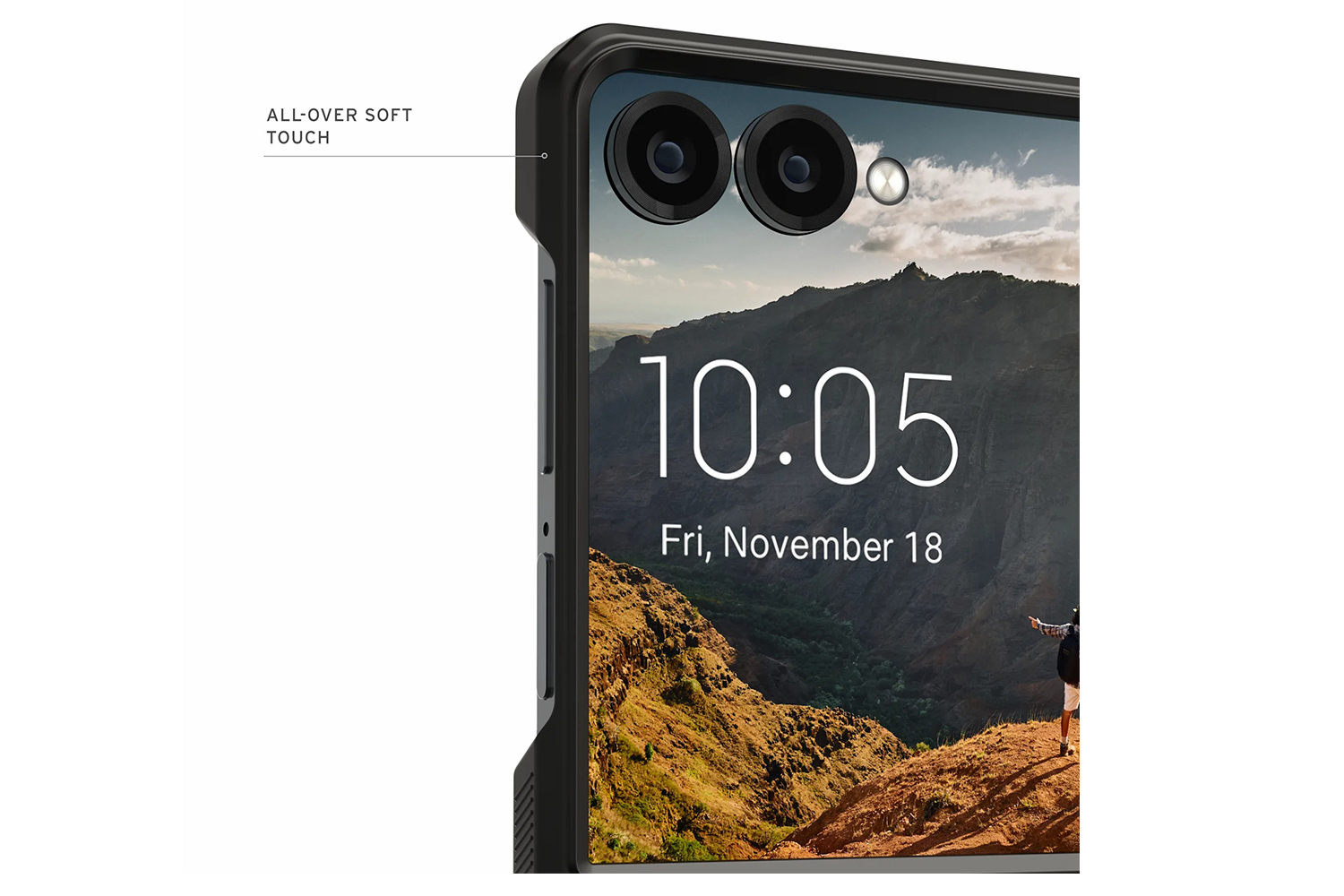 The Mouve Series delivers streamlined protection with a clean, matte finish. Its lightweight PC and TPU build offers durable impact resistance with air-soft corners, raised bezels for screen and lens protection, and an open hinge design for full fold functionality. An embedded magnetic module supports MagSafe, Qi wireless charging, and magnetic accessories—without adding bulk. The precision-fit, two-piece case snaps securely into place, featuring adhesive for added grip.