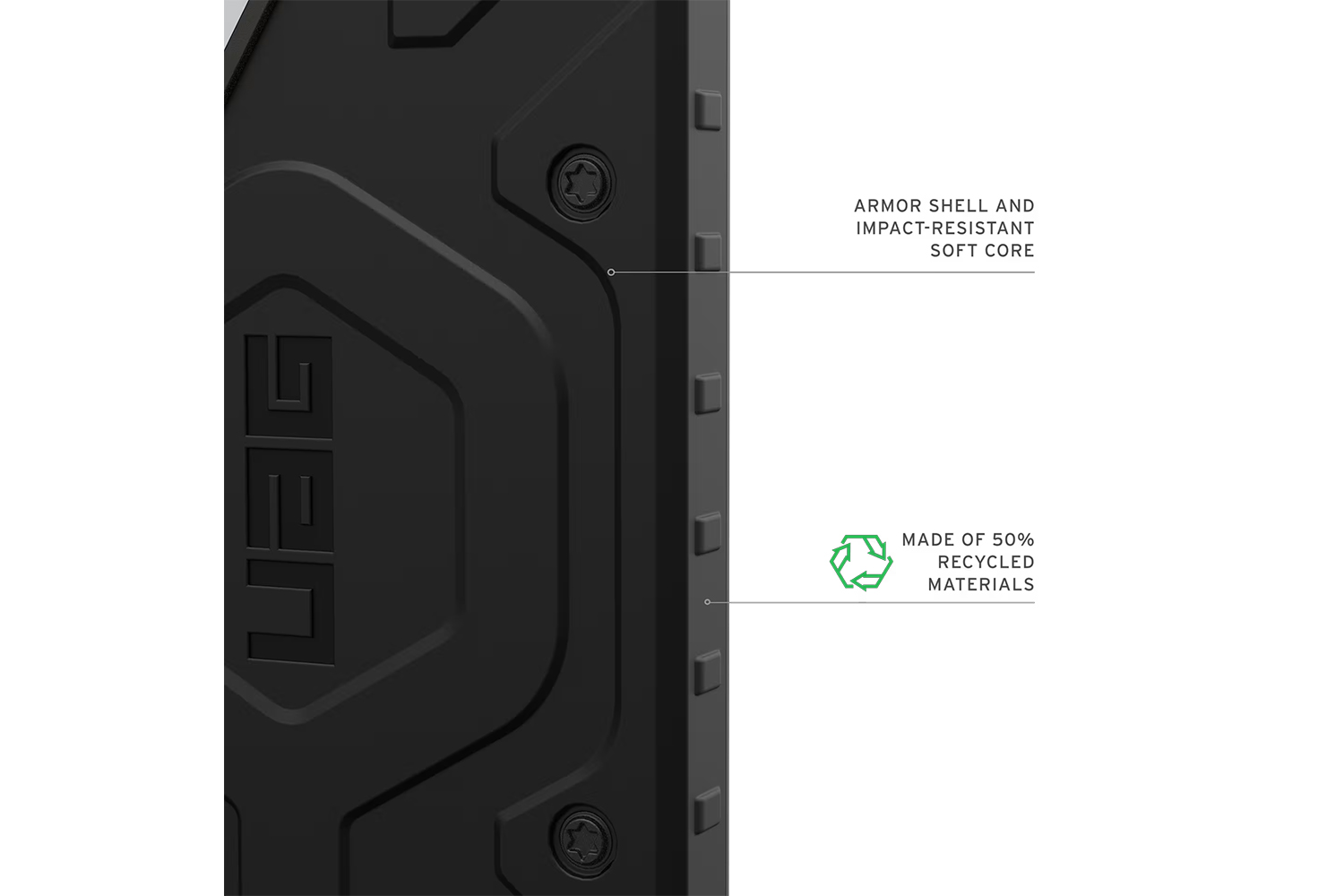 Made with 50%* post consumer recycled materials (PCR), combining sustainability with high-performance protection.