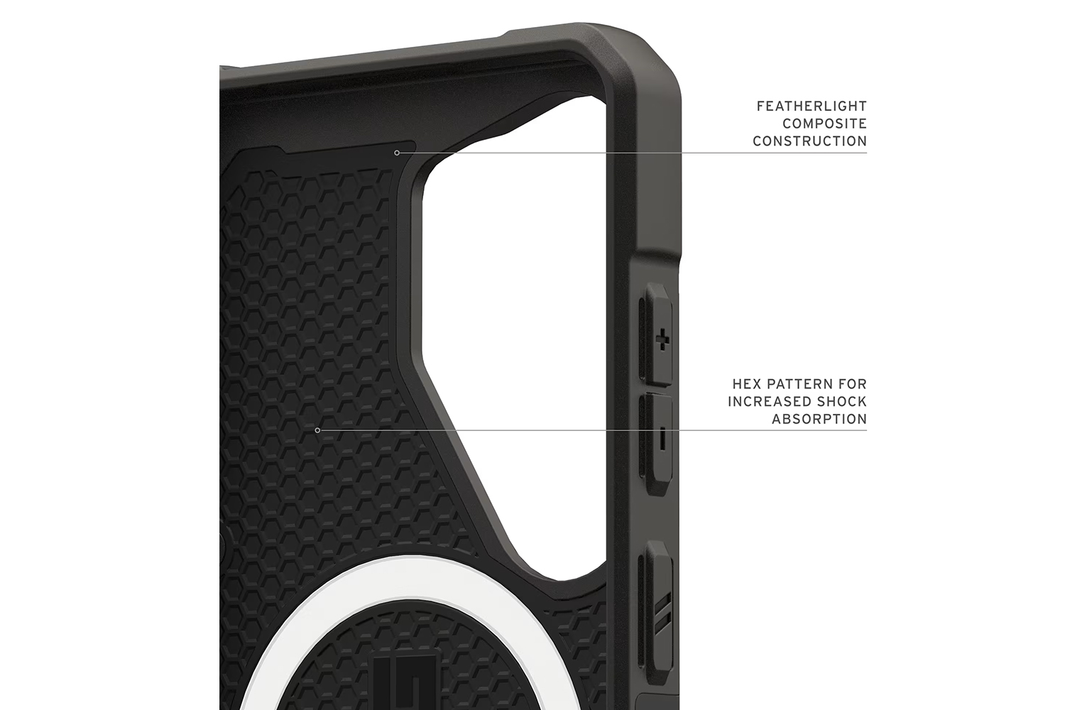 The Pathfinder Series is the ideal case for those seeking a rugged, adventure-ready protection for their Samsung Galaxy S26 Ultra. This case combines an ultra-lightweight armor shell with an impact-resistant frame and a hex pattern core, offering superior drop and shock protection. The raised screen surround safeguards your display from accidental drops, while tough TPU bumpers provide extra corner protection. UAG integrated magnet module locks your device securely in place when using wireless chargers or other magnetic accessories.
