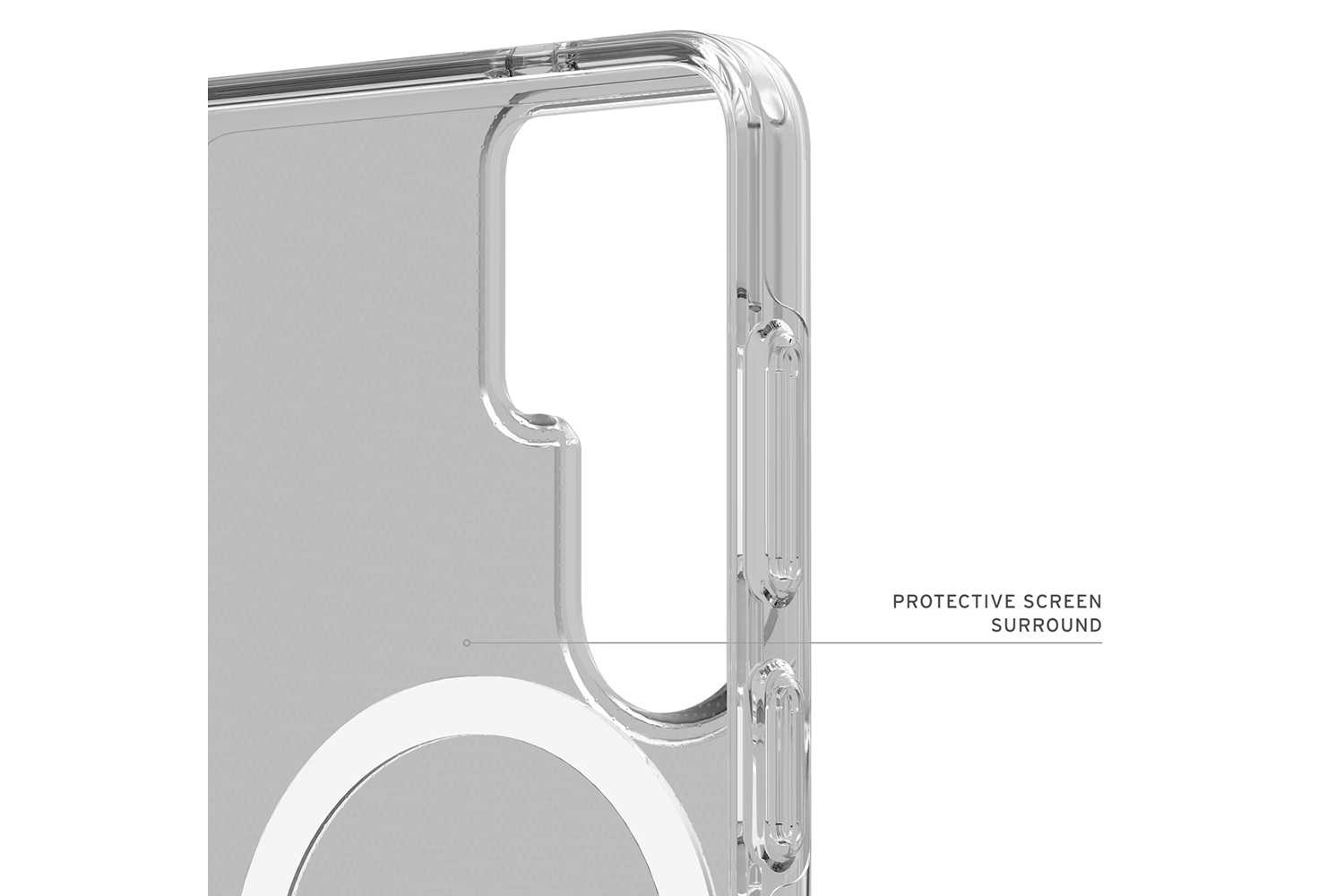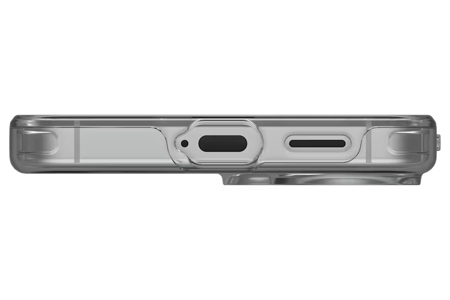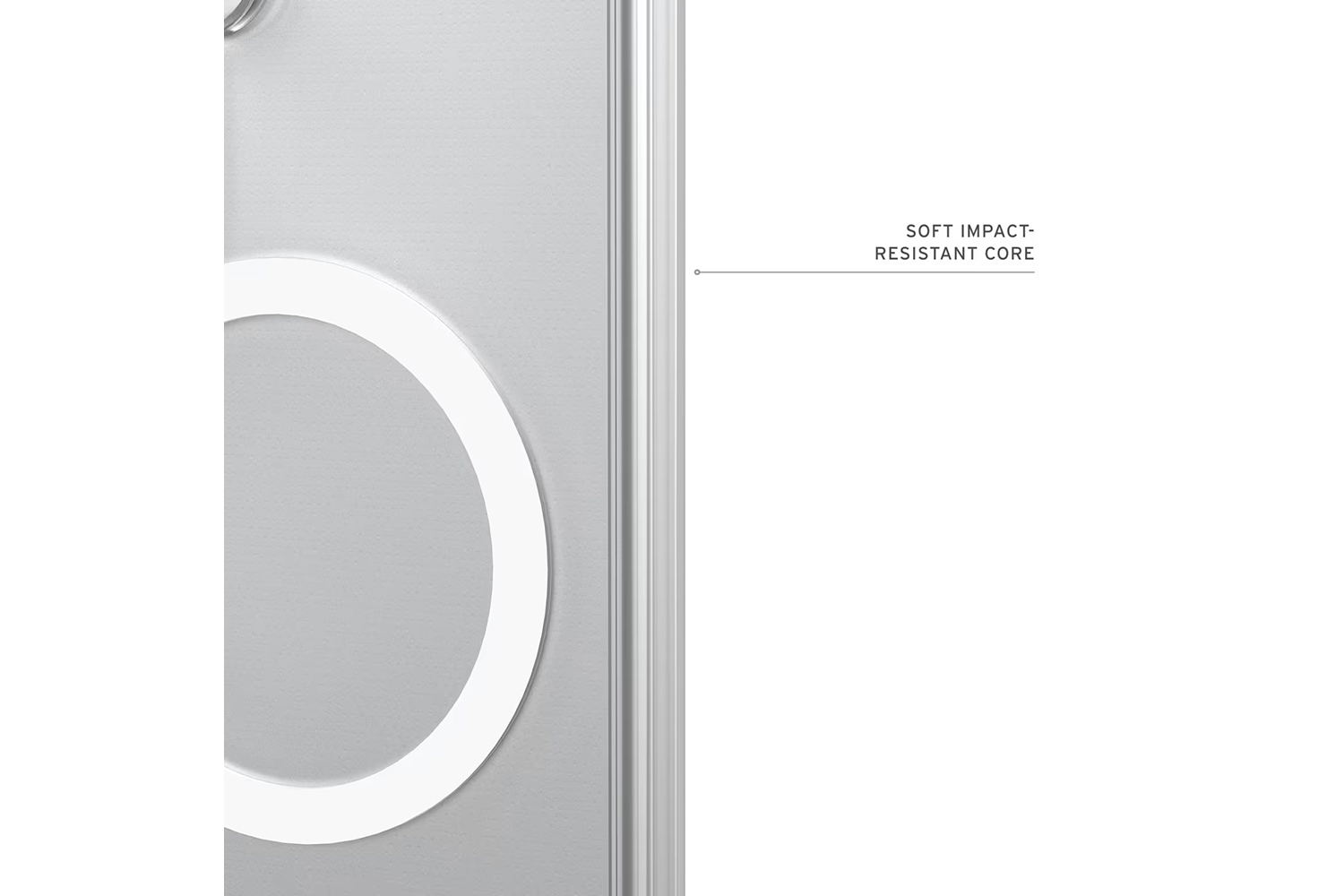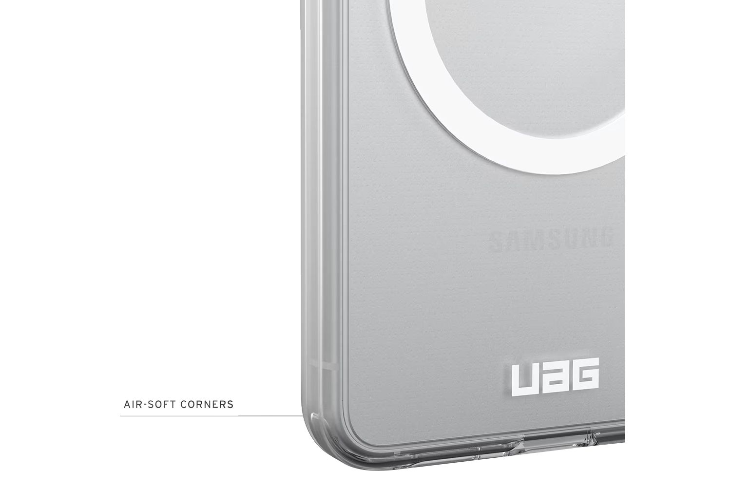 Transparent armor shell paired with an impact-resistant soft core for long-lasting clarity and dependable protection, finished with a clean UAG logo and white magnetic ring.