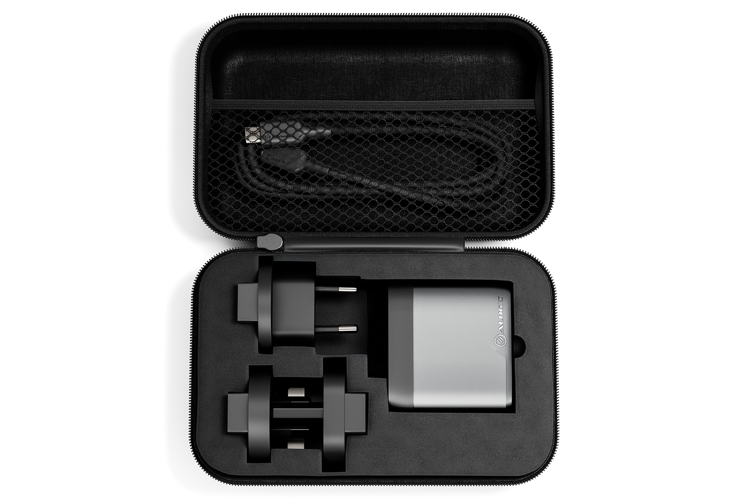 • Includes carry case, US/EU/UK/ANZ travel plugs and braided USB-C cable