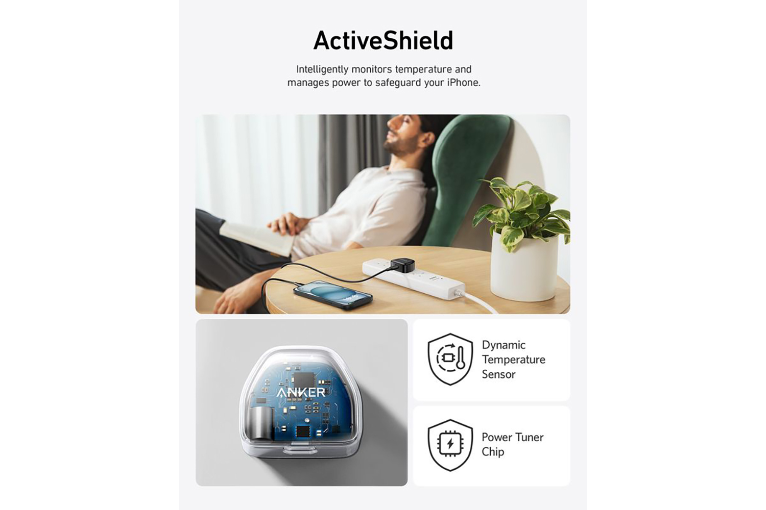 Equipped with all-new ActiveShield safety system to offer enhanced protection. Features a Dynamic Temperature Sensor which actively monitors temperature, and a Power Tuner Chip which adjusts power output to safeguard your connected device.